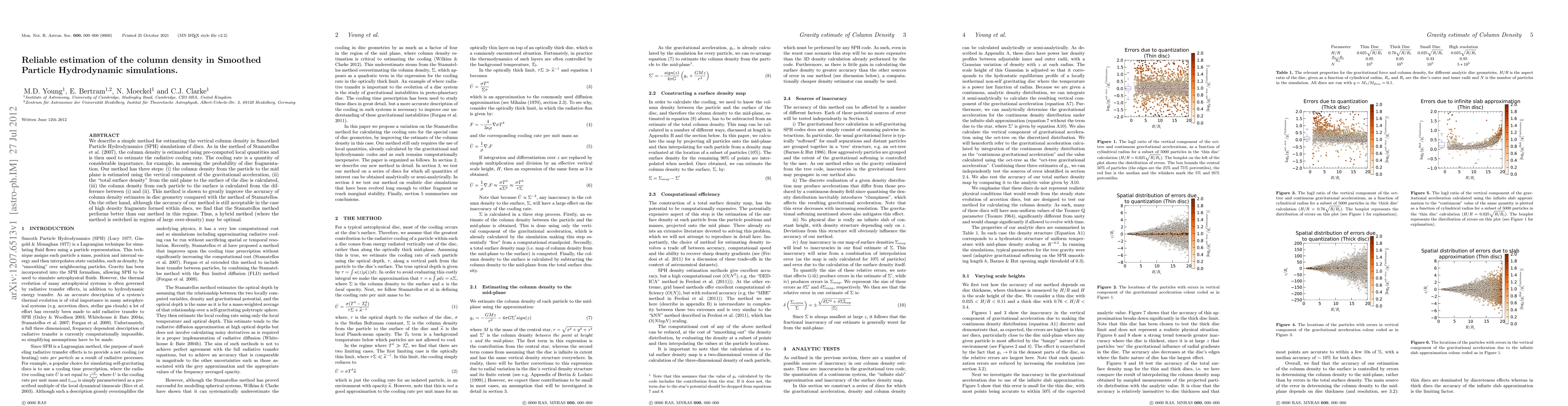 We describe a simple method for estimating the vertical column density in Smoothed Particle Hydrodynamics (SPH) simulations of discs. As in the method of Stamatellos et al. (2007), the column density is estimated using pre-computed local quantities and is then used to estimate the radiative cooling rate. The cooling rate is a quantity of considerable importance, for example, in assessing the probability of disc fragmentation. Our method has three steps: (i) the column density from the particle to the mid plane is estimated using the vertical component of the gravitational acceleration, (ii) the "total surface density" from the mid plane to the surface of the disc is calculated, (iii) the column density from each particle to the surface is calculated from the difference between (i) and (ii). This method is shown to greatly improve the accuracy of column density estimates in disc geometry compared with the method of Stamatellos. On the other hand, although the accuracy of our method is still acceptable in the case of high density fragments formed within discs, we find that the Stamatellos method performs better than our method in this regime. Thus, a hybrid method (where the method is switched in regions of large over-density) may be optimal.