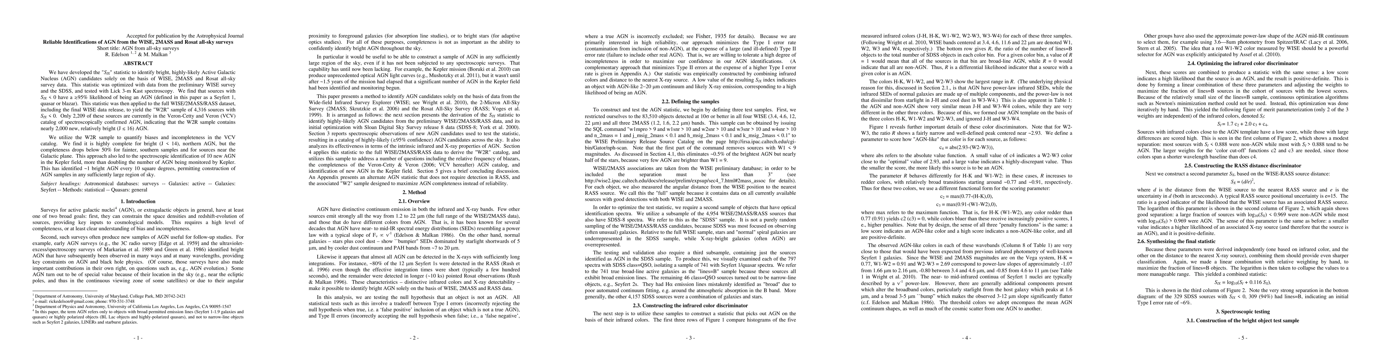 We have developed the "S_IX" statistic to identify bright, highly-likely Active Galactic Nucleus (AGN) candidates solely on the basis of WISE, 2MASS and Rosat all-sky survey data. This statistic was optimized with data from the preliminary WISE survey and the SDSS, and tested with Lick 3-m Kast spectroscopy. We find that sources with S_IX < 0 have a <~95% likelihood of being an AGN (defined in this paper as a Seyfert 1, quasar or blazar). This statistic was then applied to the full WISE/2MASS/RASS dataset, including the final WISE data release, to yield the "W2R" sample of 4,316 sources with S_IX < 0. Only 2,209 of these sources are currently in the Veron-Cetty and Veron (VCV) catalog of spectroscopically confirmed AGN, indicating that the W2R sample contains nearly 2,000 new, relatively bright (J <~ 16) AGN. We utilize the W2R sample to quantify biases and incompleteness in the VCV catalog. We find it is highly complete for bright (J < 14), northern AGN, but the completeness drops below 50% for fainter, southern samples and for sources near the Galactic plane. This approach also led to the spectroscopic identification of 10 new AGN in the Kepler field, more than doubling the number of AGN being monitored by Kepler. This has identified ~1 bright AGN every 10 square degrees, permitting construction of AGN samples in any sufficiently large region of sky.