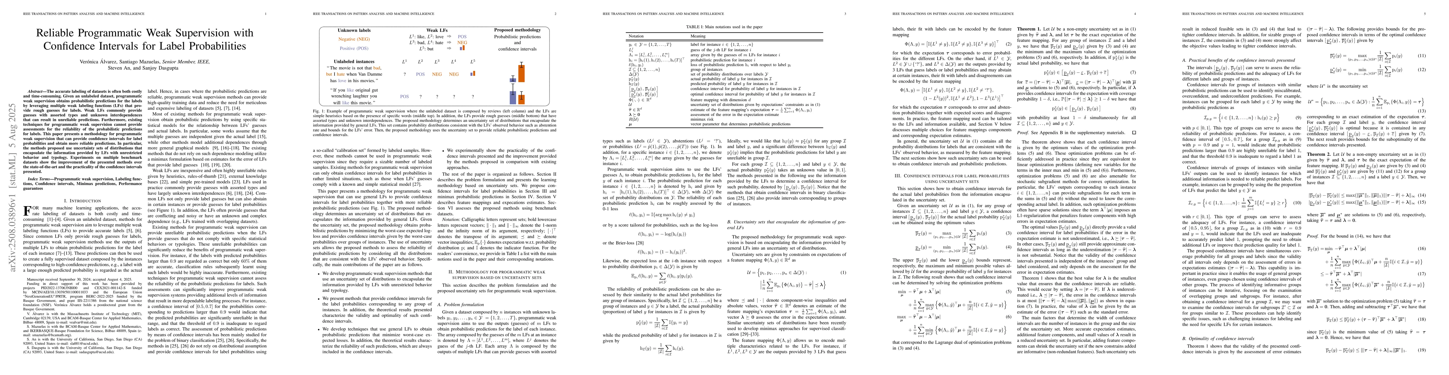 The accurate labeling of datasets is often both costly and time-consuming. Given an unlabeled dataset, programmatic weak supervision obtains probabilistic predictions for the labels by leveraging multiple weak labeling functions (LFs) that provide rough guesses for labels. Weak LFs commonly provide guesses with assorted types and unknown interdependences that can result in unreliable predictions. Furthermore, existing techniques for programmatic weak supervision cannot provide assessments for the reliability of the probabilistic predictions for labels. This paper presents a methodology for programmatic weak supervision that can provide confidence intervals for label probabilities and obtain more reliable predictions. In particular, the methods proposed use uncertainty sets of distributions that encapsulate the information provided by LFs with unrestricted behavior and typology. Experiments on multiple benchmark datasets show the improvement of the presented methods over the state-of-the-art and the practicality of the confidence intervals presented.