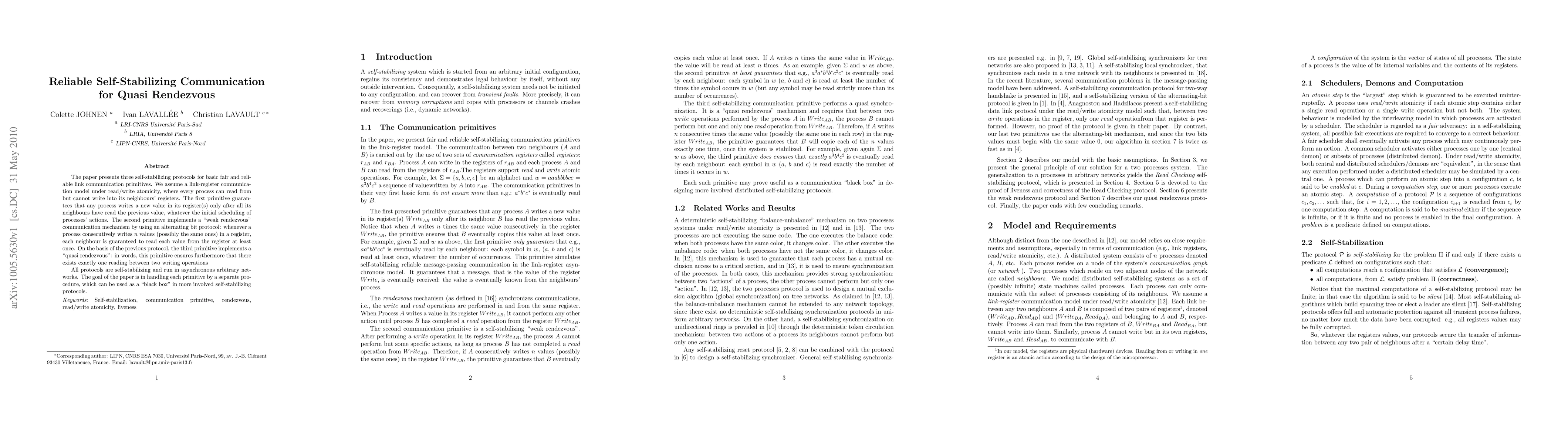 The paper introduces three self-stabilizing protocols for reliable link communication in asynchronous networks, ensuring fair and reliable communication through mechanisms like "weak rendezvous" and "quasi rendezvous." Each protocol can function independently, serving as a modular component in broader self-stabilizing systems.