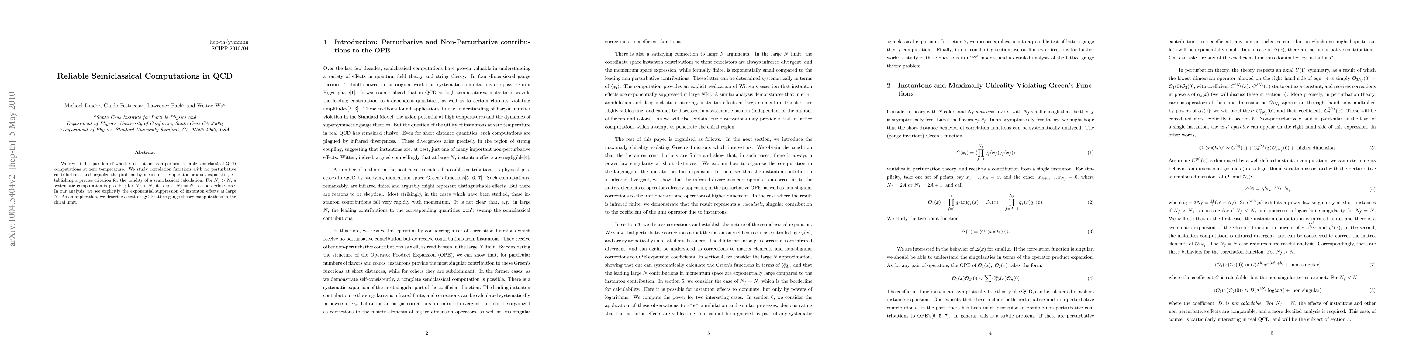 semiclassical QCD computations at zero temperature. We study correlation