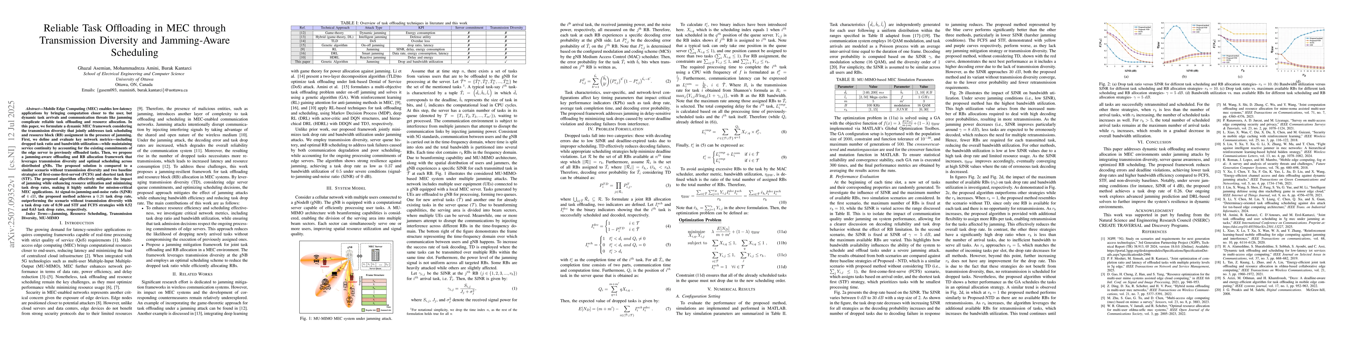 Mobile Edge Computing (MEC) enables low-latency applications by bringing computation closer to the user, but dynamic task arrivals and communication threats like jamming complicate reliable task offloading and resource allocation. In this paper, we formulate a dynamic MEC framework considering the transmission diversity that jointly addresses task scheduling and resource block (RB) assignment in the presence of jamming. First, we define and evaluate key network metrics-including dropped task ratio and bandwidth utilization-while maintaining service continuity by accounting for the existing commitments of the edge server to previously offloaded tasks. Then, we propose a jamming-aware offloading and RB allocation framework that leverages transmission diversity and optimal scheduling across distributed gNBs. The proposed solution is compared to a similar scenario without transmission diversity and two baseline strategies of first-come-first-served (FCFS) and shortest task first (STF). The proposed algorithm effectively mitigates the impact of jamming while enhancing resource utilization and minimizing task drop rates, making it highly suitable for mission-critical MEC applications. At signal-to-jamming-and-noise ratio (SJNR) of 4 dB, the proposed method achieves a $0.26$ task drop rate, outperforming the scenario without transmission diversity with a task drop rate of 0.50 and STF and FCFS strategies with 0.52 and 0.63 task drop rates, respectively.
