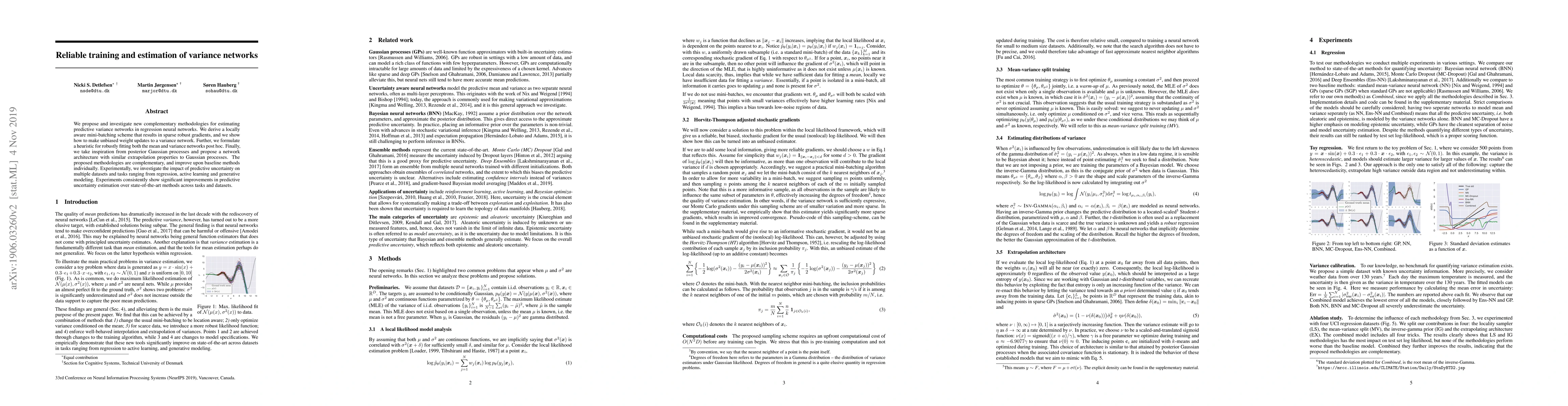 We propose and investigate new complementary methodologies for estimating predictive variance networks in regression neural networks. We derive a locally aware mini-batching scheme that result in sparse robust gradients, and show how to make unbiased weight updates to a variance network. Further, we formulate a heuristic for robustly fitting both the mean and variance networks post hoc. Finally, we take inspiration from posterior Gaussian processes and propose a network architecture with similar extrapolation properties to Gaussian processes. The proposed methodologies are complementary, and improve upon baseline methods individually. Experimentally, we investigate the impact on predictive uncertainty on multiple datasets and tasks ranging from regression, active learning and generative modeling. Experiments consistently show significant improvements in predictive uncertainty estimation over state-of-the-art methods across tasks and datasets.