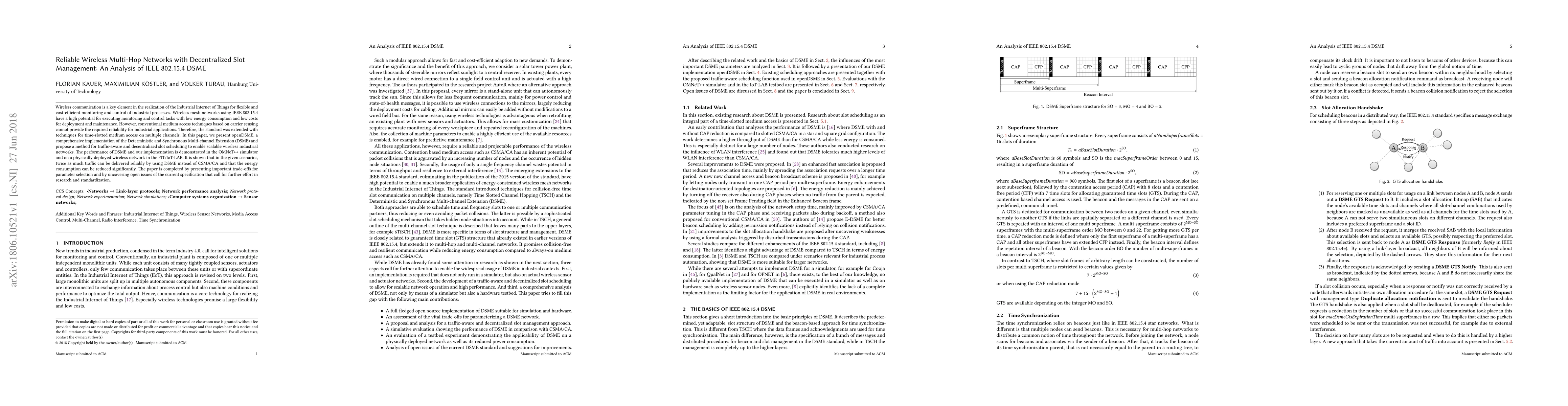 This paper presents openDSME, a comprehensive implementation of IEEE 802.15.4 DSME, and proposes a decentralized slot scheduling method for reliable wireless multi-hop networks. The results show that DSME can deliver twice as much traffic reliably compared to CSMA/CA, with significant energy savings.