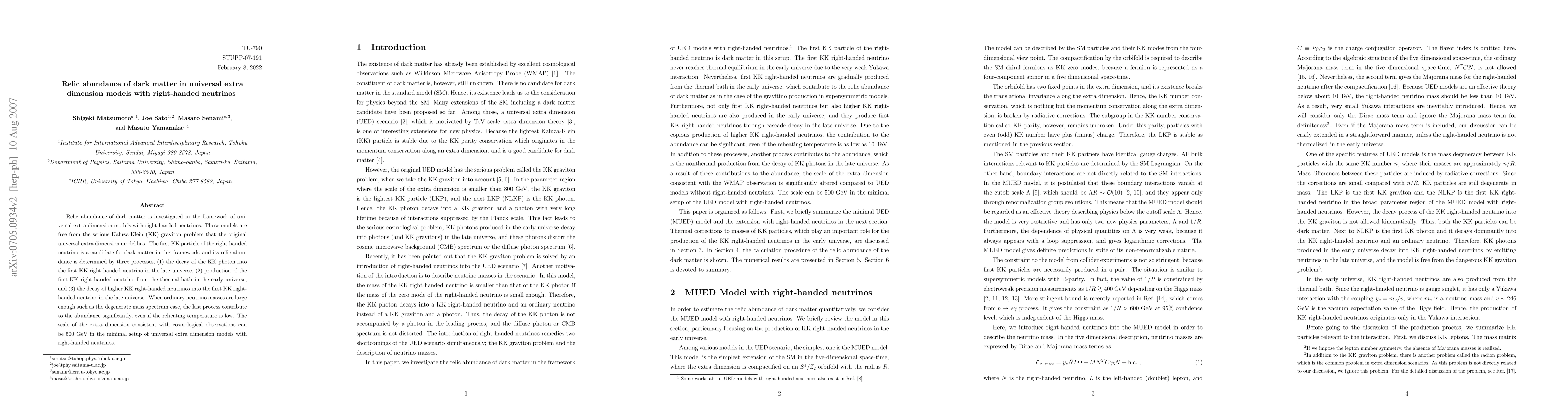 Relic abundance of dark matter is investigated in the framework of universal extra dimension models with right-handed neutrinos. These models are free from the serious Kaluza-Klein (KK) graviton problem that the original universal extra dimension model has. The first KK particle of the right-handed neutrino is a candidate for dark matter in this framework, and its relic abundance is determined by three processes, (1) the decay of the KK photon into the first KK right-handed neutrino in the late universe, (2) production of the first KK right-handed neutrino from the thermal bath in the early universe, and (3) the decay of higher KK right-handed neutrinos into the first KK right-handed neutrino in the late universe. When ordinary neutrino masses are large enough such as the degenerate mass spectrum case, the last process contribute to the abundance significantly, even if the reheating temperature is low. The scale of the extra dimension consistent with cosmological observations can be 500 GeV in the minimal setup of universal extra dimension models with right-handed neutrinos.