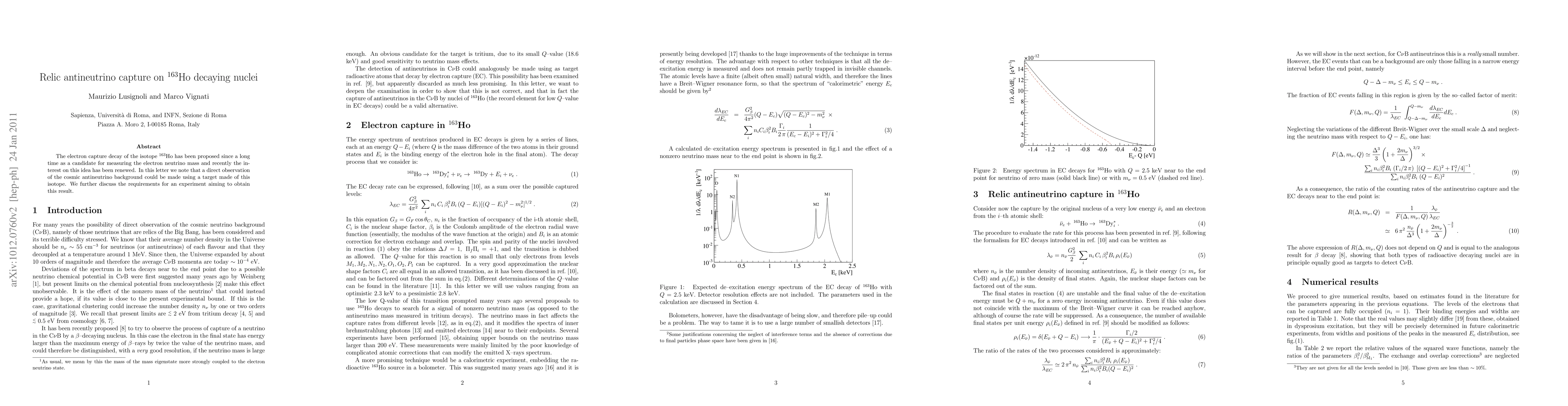 The electron capture decay of the isotope 163-Ho has been proposed since a long time as a candidate for measuring the electron neutrino mass and recently the interest on this idea has been renewed. In this paper we note that a direct observation of the cosmic antineutrino background could be made using a target made of this isotope. We further discuss the requests for an experiment aiming to obtain this result.