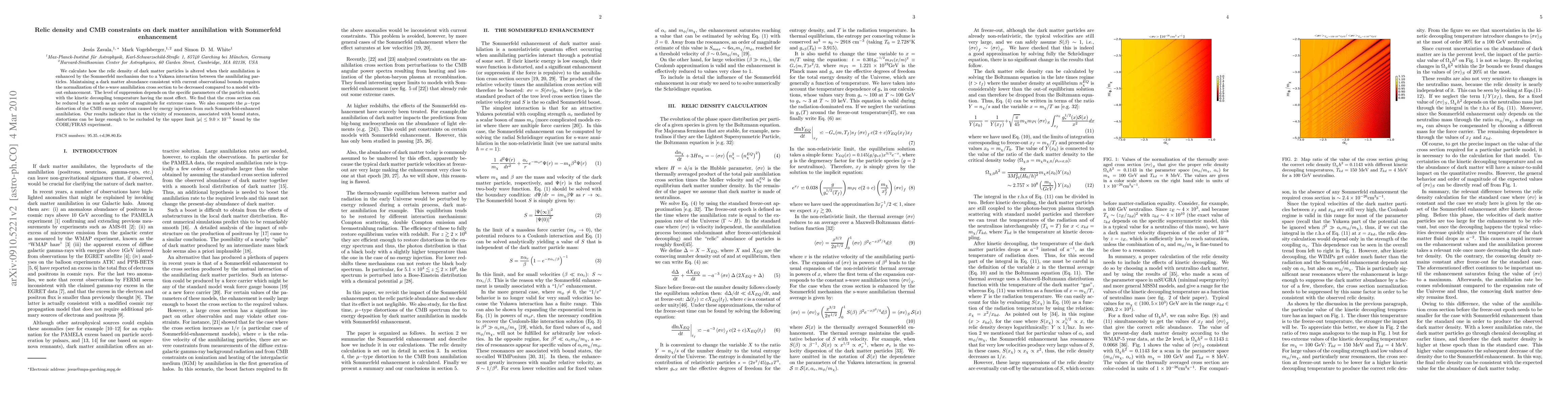 This paper investigates how the relic density of dark matter is affected when its annihilation is enhanced by the Sommerfeld mechanism, leading to a decrease in the s-wave annihilation cross section. It also examines the CMB energy spectrum distortions caused by such enhanced annihilation, finding that near resonances, these distortions may exceed observational limits.