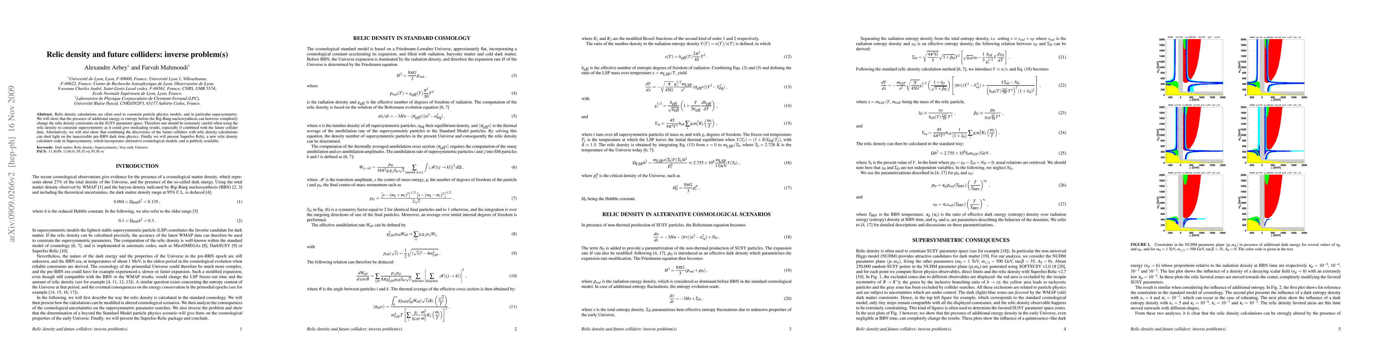 Relic density calculations are often used to constrain particle physics models, and in particular supersymmetry. We will show that the presence of additional energy or entropy before the Big-Bang nucleosynthesis can however completely change the relic density constraints on the SUSY parameter space. Therefore one should be extremely careful when using the relic density to constrain supersymmetry as it could give misleading results, especially if combined with the future collider data. Alternatively, we will also show that combining the discoveries of the future colliders with relic density calculations can shed light on the inaccessible pre-BBN dark time physics. Finally we will present SuperIso Relic, a new relic density calculator code in Supersymmetry, which incorporates alternative cosmological models, and is publicly available.