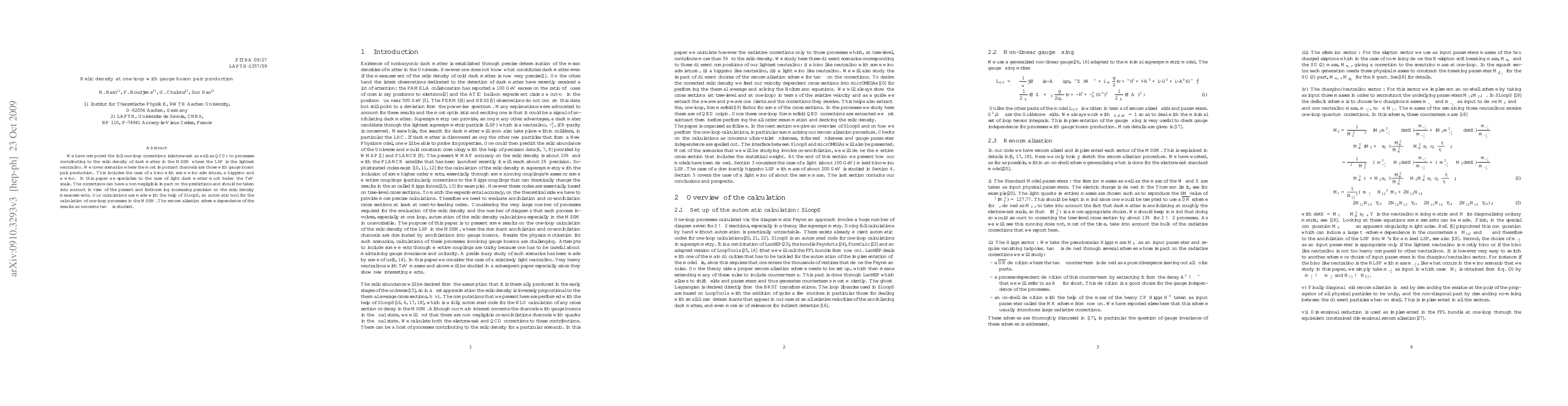 We have computed the full one-loop corrections (electroweak as well as QCD) to processes contributing to the relic density of dark matter in the MSSM where the LSP is the lightest neutralino. We cover scenarios where the most important channels are those with gauge boson pair production. This includes the case of a bino with some wino admixture, a higgsino and a wino. In this paper we specialise to the case of light dark matter much below the TeV scale. The corrections can have a non-negligible impact on the predictions and should be taken into account in view of the present and forthcoming increasing precision on the relic density measurements. Our calculations are made with the help of \SloopS, an automatic tool for the calculation of one-loop processes in the MSSM. The renormalisation scheme dependence of the results as concerns $\tgb$ is studied.