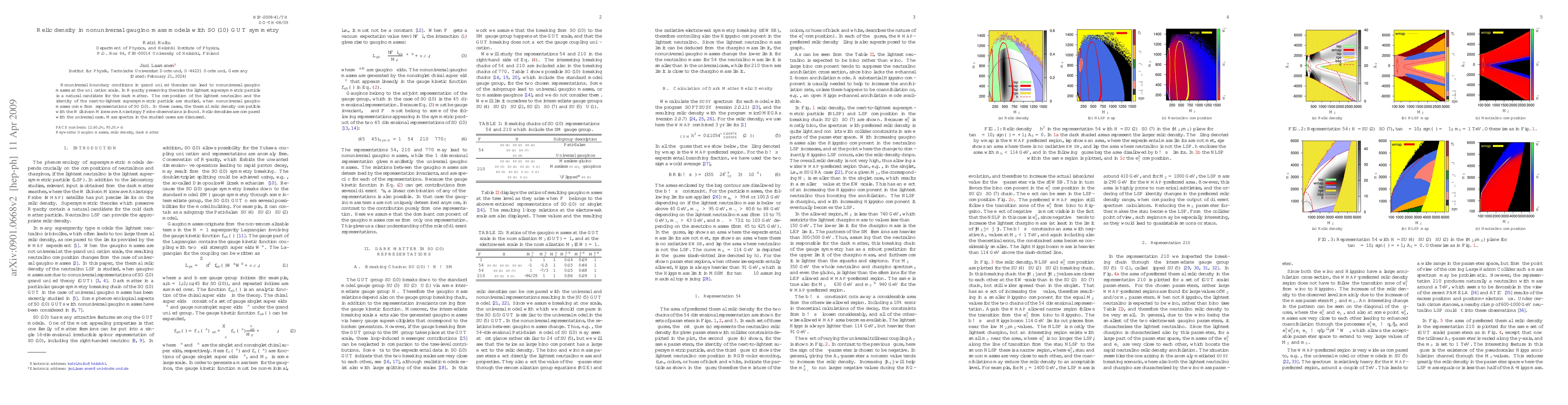 This paper investigates the relic density in nonuniversal gaugino mass models derived from SO(10) grand unified theories, focusing on the lightest neutralino as a dark matter candidate. It finds thermal relic densities consistent with observations, comparing these with universal gaugino mass scenarios and discussing the resulting mass spectra.