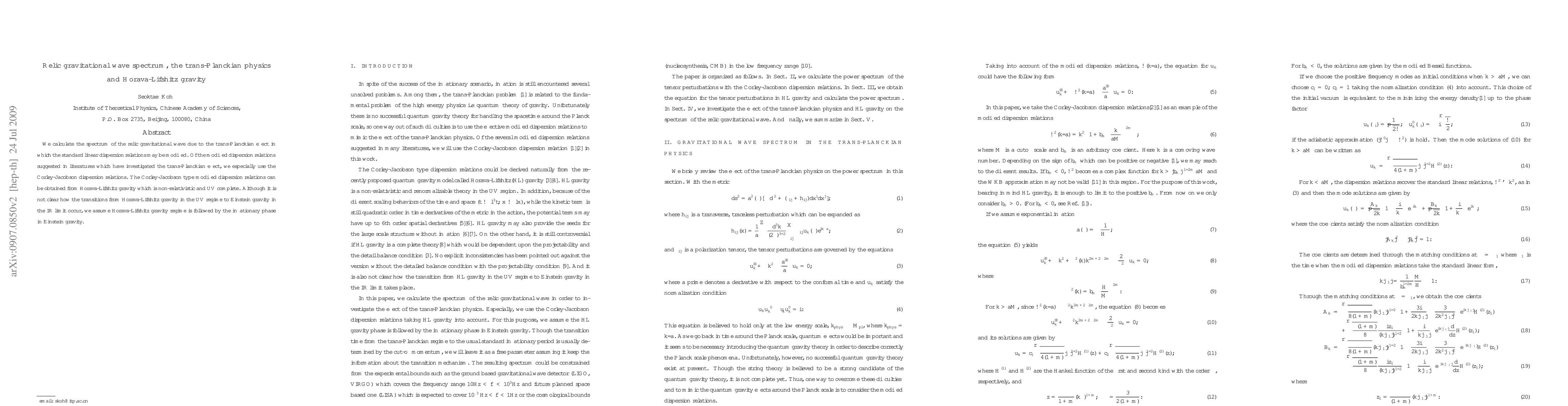 This paper calculates the relic gravitational wave spectrum influenced by the trans-Planckian effect, specifically using the Corley-Jacobson modified dispersion relations derived from Hořava-Lifshitz gravity. It assumes Hořava-Lifshitz gravity precedes an inflationary phase in Einstein gravity, despite uncertainties regarding the transition between the two frameworks.