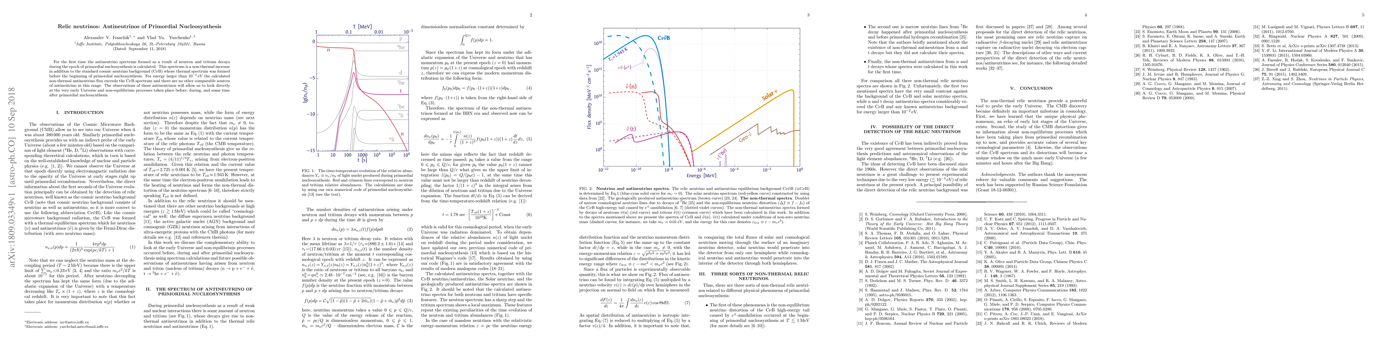 This paper calculates the antineutrino spectrum from neutron and tritium decays during primordial nucleosynthesis, revealing a non-thermal component that exceeds the standard cosmic neutrino background for energies above $10^{-2}$ eV. This provides a unique observational window into early Universe processes.
