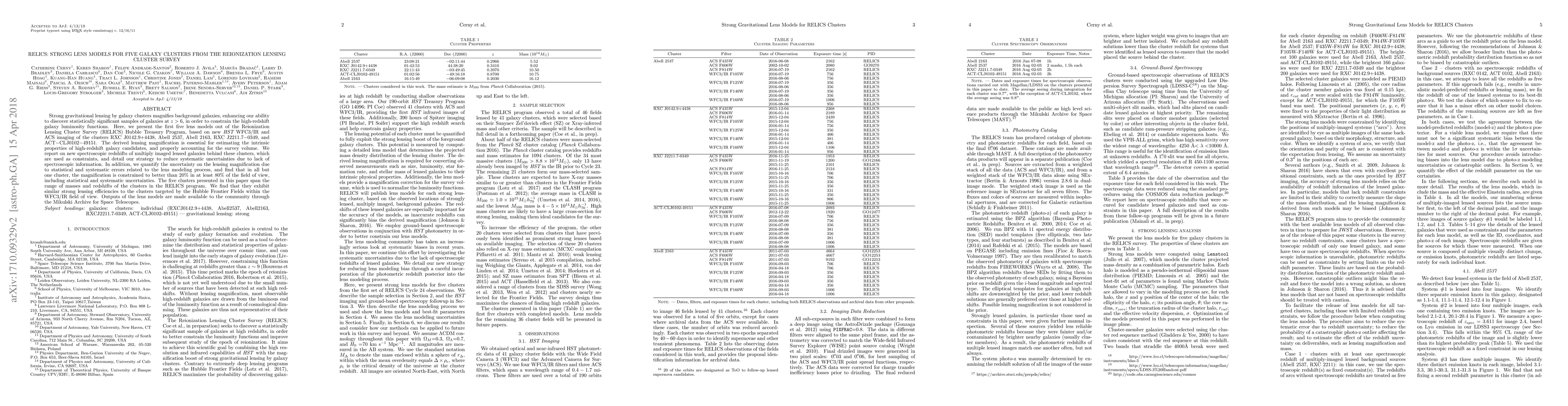 This paper presents the first five strong lens models from the RELICS survey, utilizing new HST imaging to identify and magnify high-redshift galaxies. The models achieve lensing magnification constraints better than 20% in most areas, aiding in the study of early galaxy luminosity functions.