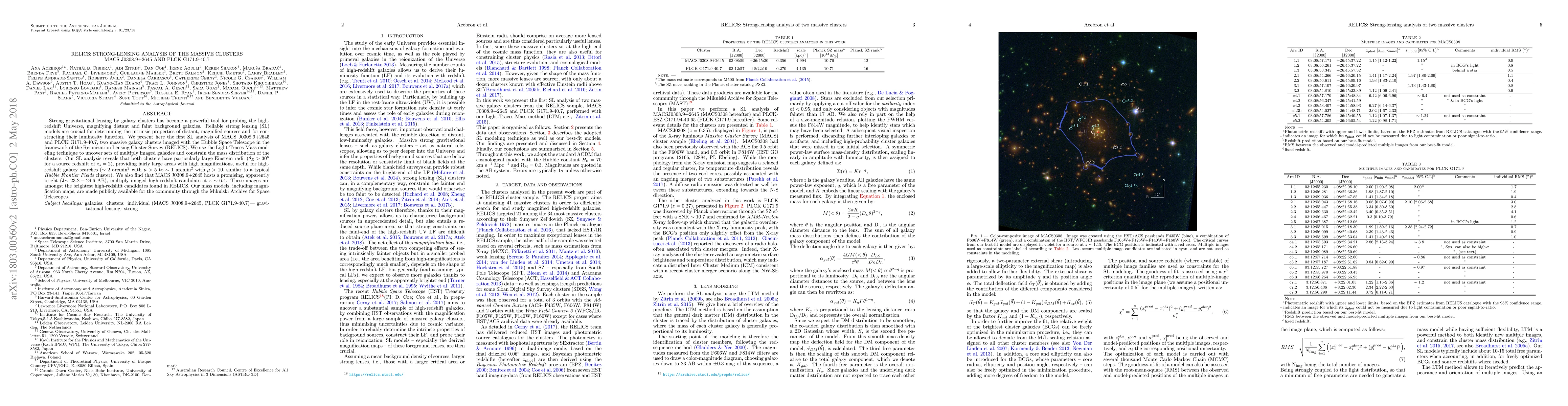 This paper presents the first strong lensing analysis of the massive galaxy clusters MACS J0308.9+2645 and PLCK G171.9-40.7 using the Hubble Space Telescope within the RELICS survey. The study reveals large Einstein radii and high magnification areas, providing valuable regions for high-redshift galaxy searches, and identifies a promising high-redshift candidate at $z\sim6.4$ in MACS J0308.9+2645.