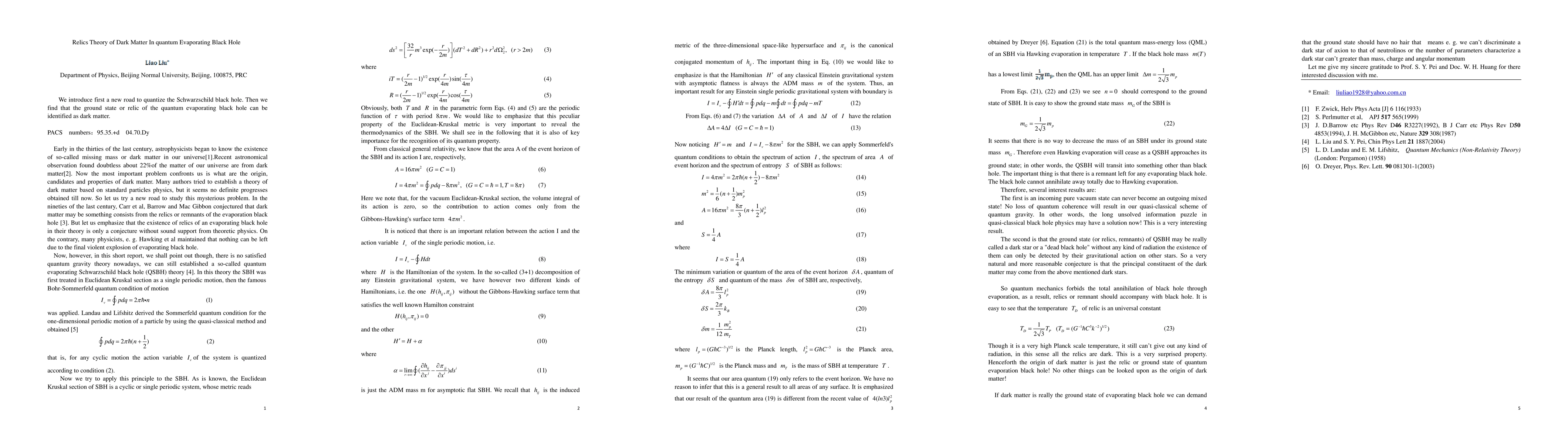 This paper proposes a novel method to quantize the Schwarzschild black hole and suggests that the ground state or relic of a quantum evaporating black hole could serve as a candidate for dark matter.