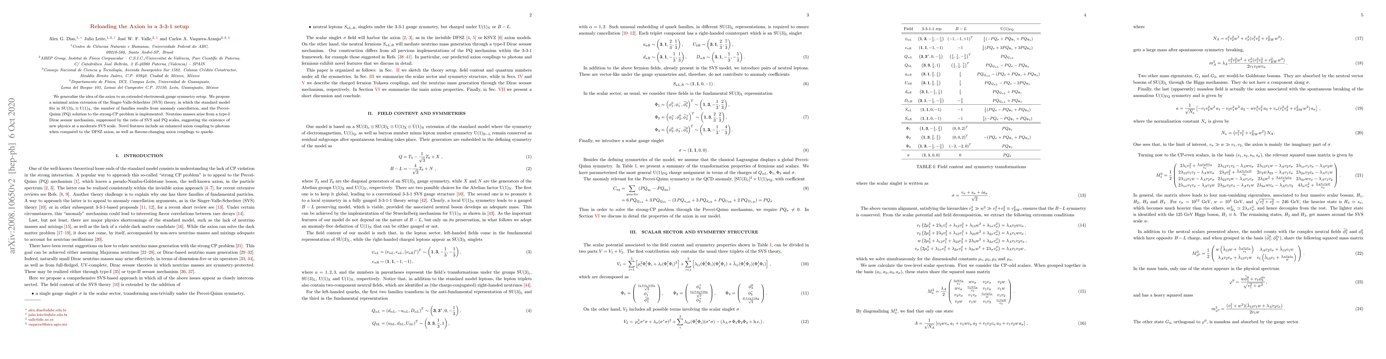 We generalize the idea of the axion to an extended electroweak gauge symmetry setup. We propose a minimal axion extension of the Singer-Valle-Schechter (SVS) theory, in which the standard model fits in $\mathrm{SU(3)_L\otimes U(1)_X}$, the number of families results from anomaly cancellation, and the Peccei-Quinn (PQ) solution to the strong-CP problem is implemented. Neutrino masses arise from a type-I Dirac seesaw mechanism, suppressed by the ratio of SVS and PQ scales, suggesting the existence of new physics at a moderate SVS scale. Novel features include an enhanced axion coupling to photons when compared to the DFSZ axion, as well as flavour-changing axion couplings to quarks.