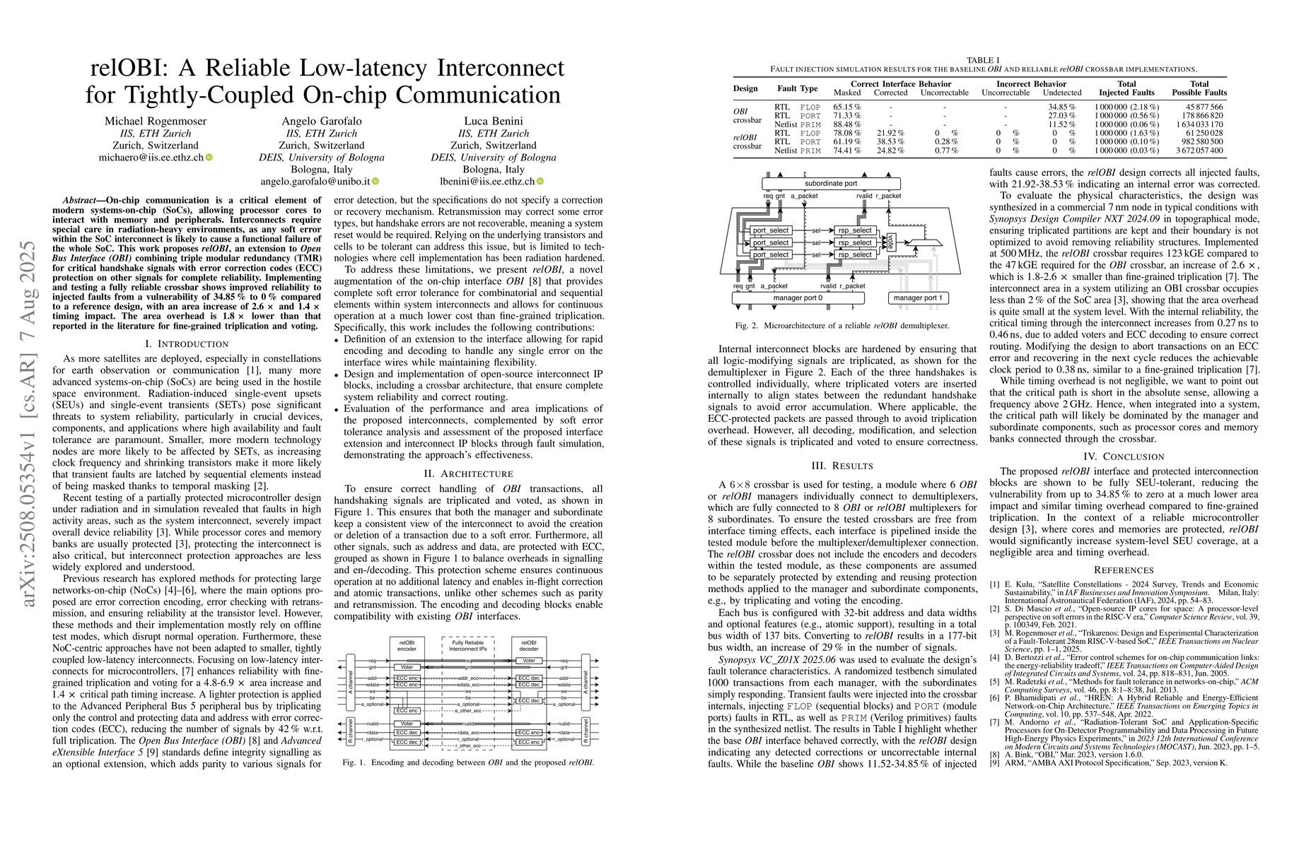 On-chip communication is a critical element of modern systems-on-chip (SoCs), allowing processor cores to interact with memory and peripherals. Interconnects require special care in radiation-heavy environments, as any soft error within the SoC interconnect is likely to cause a functional failure of the whole SoC. This work proposes relOBI, an extension to Open Bus Interface (OBI) combining triple modular redundancy (TMR) for critical handshake signals with error correction codes (ECC) protection on other signals for complete reliability. Implementing and testing a fully reliable crossbar shows improved reliability to injected faults from a vulnerability of 34.85 % to 0 % compared to a reference design, with an area increase of 2.6x and 1.4x timing impact. The area overhead is 1.8x lower than that reported in the literature for fine-grained triplication and voting.