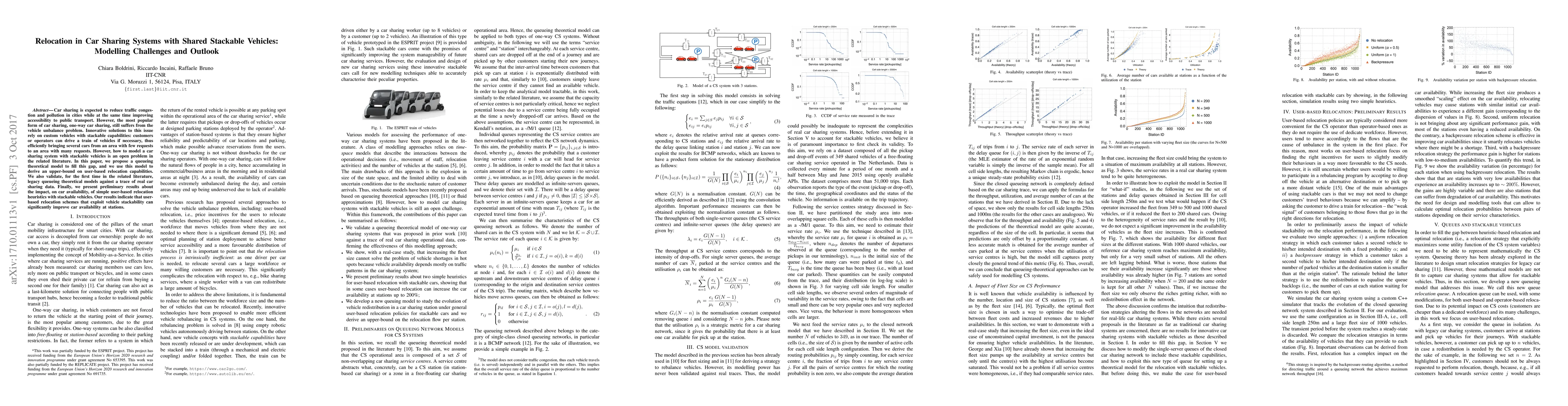 This paper proposes a queueing theoretical model to address the vehicle unbalance problem in one-way car sharing systems, particularly focusing on stackable vehicles. The study validates existing models against real car sharing data and demonstrates that user-based relocation strategies leveraging stackable vehicles can significantly enhance car availability at stations.
