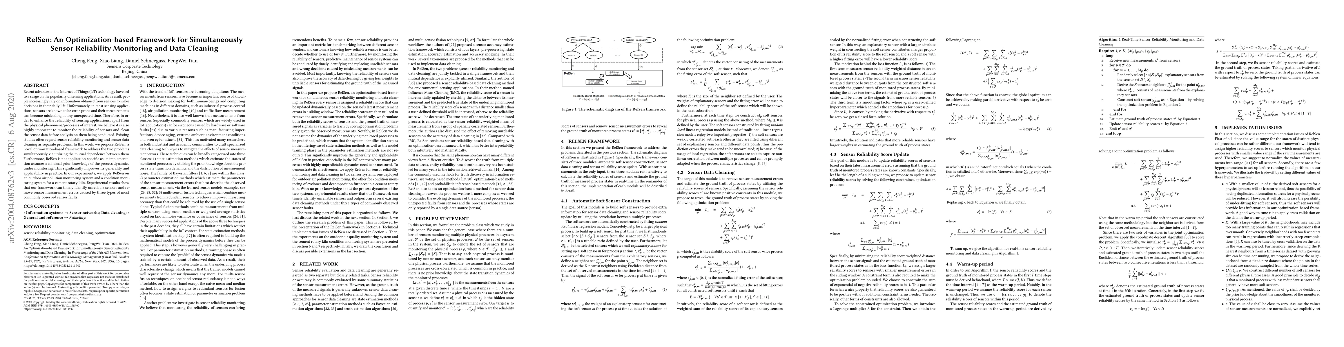Recent advances in the Internet of Things (IoT) technology have led to a surge on the popularity of sensing applications. As a result, people increasingly rely on information obtained from sensors to make decisions in their daily life. Unfortunately, in most sensing applications, sensors are known to be error-prone and their measurements can become misleading at any unexpected time. Therefore, in order to enhance the reliability of sensing applications, apart from the physical phenomena/processes of interest, we believe it is also highly important to monitor the reliability of sensors and clean the sensor data before analysis on them being conducted. Existing studies often regard sensor reliability monitoring and sensor data cleaning as separate problems. In this work, we propose RelSen, a novel optimization-based framework to address the two problems simultaneously via utilizing the mutual dependence between them. Furthermore, RelSen is not application-specific as its implementation assumes a minimal prior knowledge of the process dynamics under monitoring. This significantly improves its generality and applicability in practice. In our experiments, we apply RelSen on an outdoor air pollution monitoring system and a condition monitoring system for a cement rotary kiln. Experimental results show that our framework can timely identify unreliable sensors and remove sensor measurement errors caused by three types of most commonly observed sensor faults.