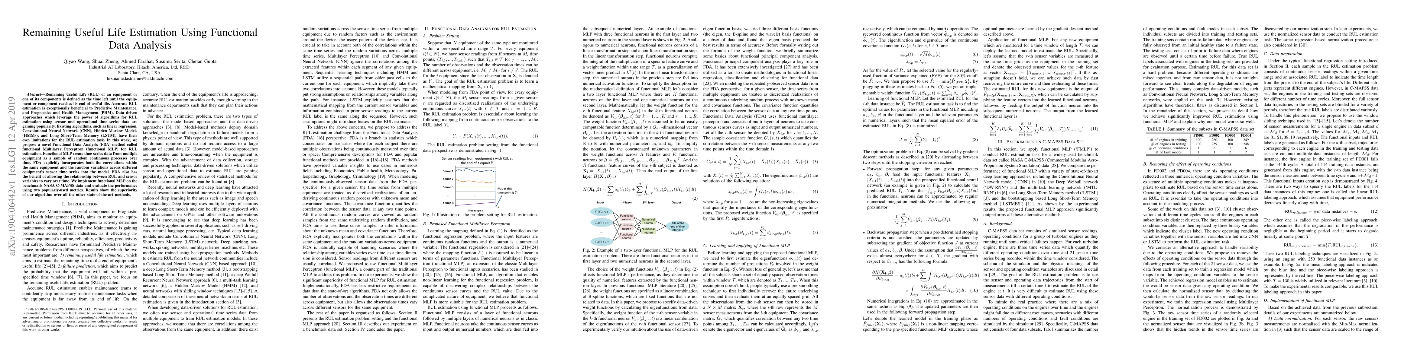 This paper proposes a novel Functional Data Analysis (FDA) method called functional Multilayer Perceptron (functional MLP) for estimating the Remaining Useful Life (RUL) of equipment. The FDA approach effectively captures correlations within and variations across sensor time series data, outperforming existing methods on the NASA C-MAPSS benchmark dataset.