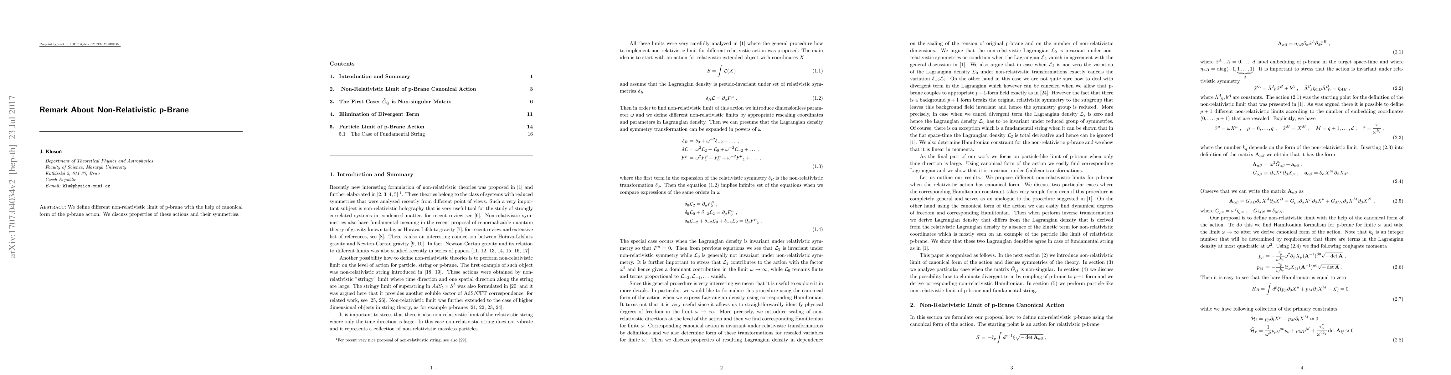 We define different non-relativistic limit of p-brane with the help of canonical form of the p-brane action. We discuss properties of these actions and their symmetries.