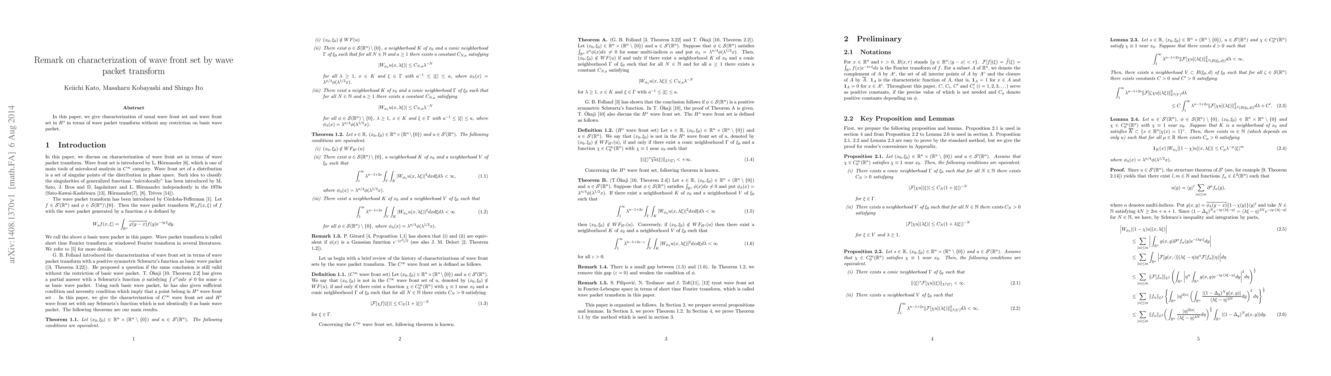 Summary: This paper characterizes both the usual and Sobolev type wave front sets using the wave packet transform, demonstrating that these characterizations hold without any restrictions on the basic wave packet.
