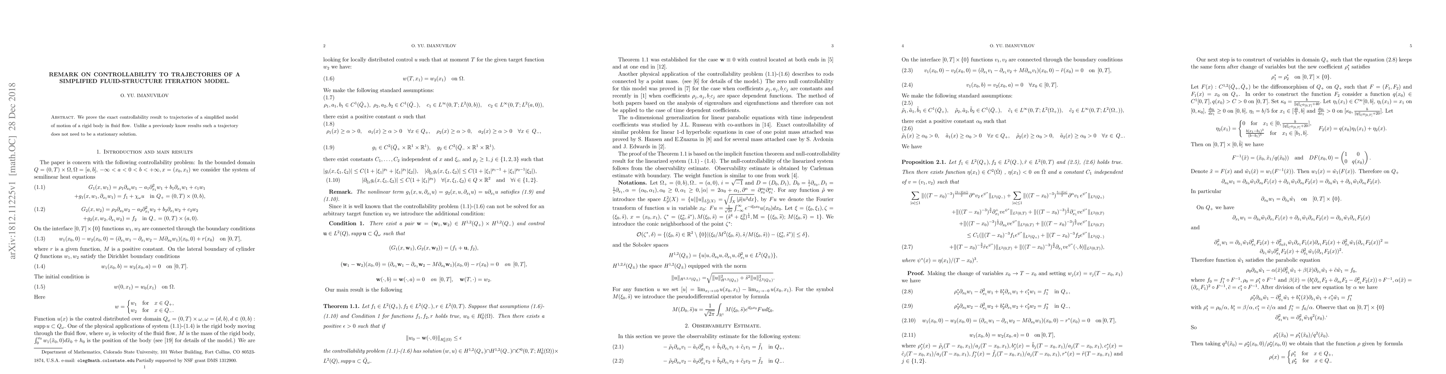 We prove the exact controllability result to trajectories of a simplified model of motion of a rigid body in fluid flow. Unlike a previously know results such a trajectory does not need to be a stationary solution.