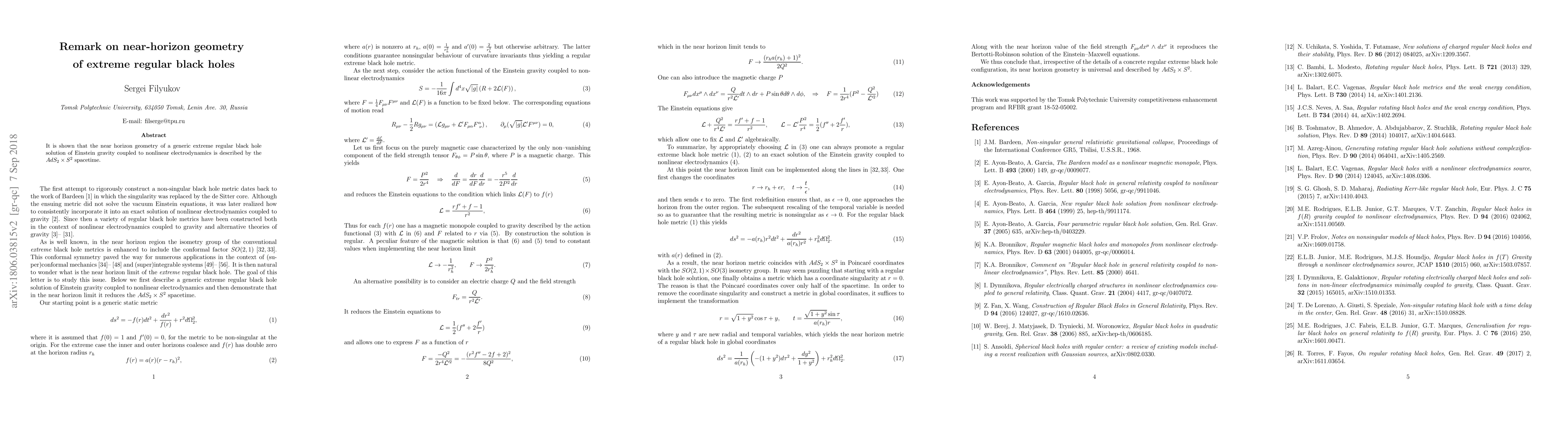 Summary: The study reveals that the near-horizon geometry of extreme regular black holes in Einstein gravity coupled with nonlinear electrodynamics is characterized by the $AdS_2 \times S^2$ spacetime structure. This finding provides insight into the geometric properties of such black holes.