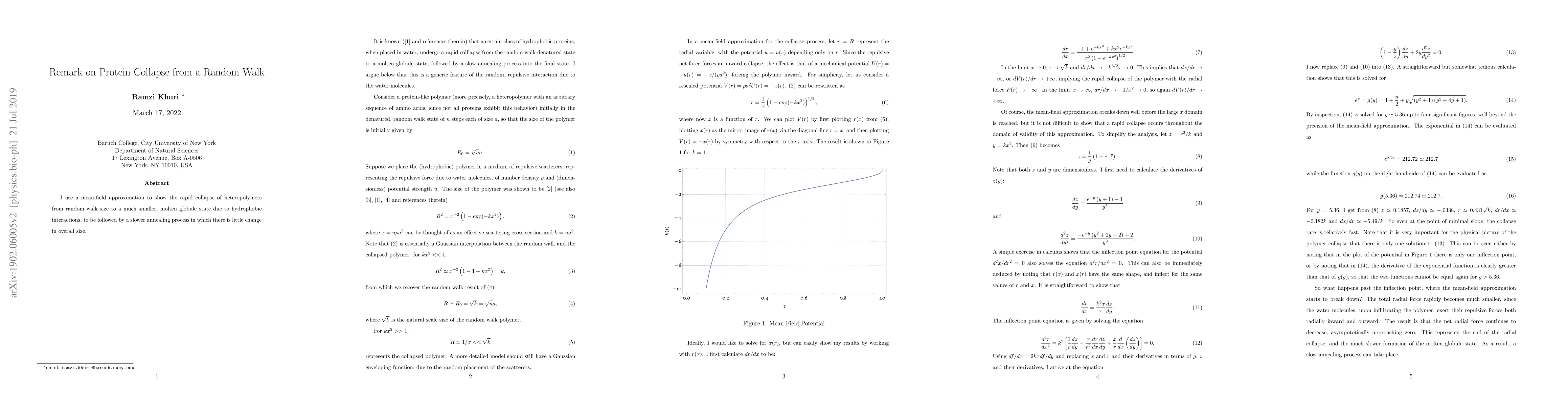 I use a mean-field approximation to show the rapid collapse of heteropolymers from random walk size to a much smaller, molten globule state due to hydrophobic interactions, to be followed by a slower annealing process in which there is little change in overall size.