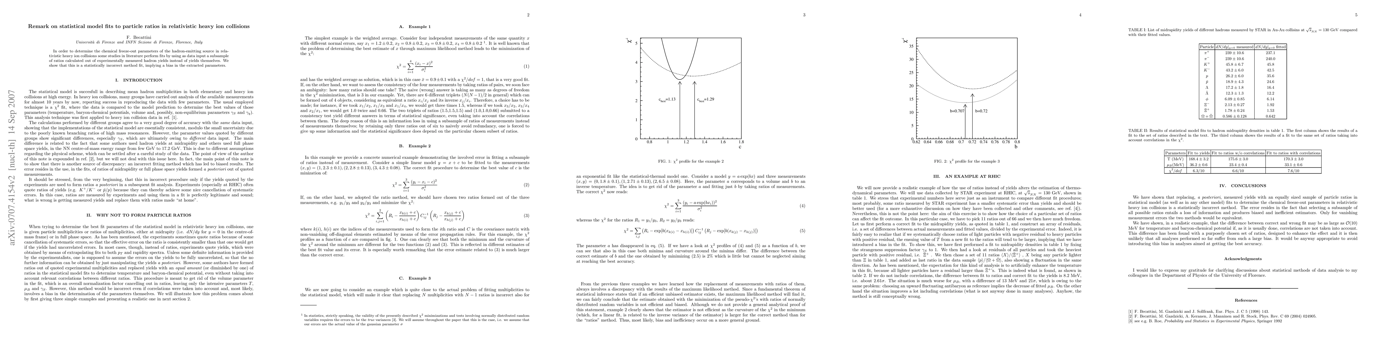 In order to determine the chemical freeze-out parameters of the hadron-emitting source in relativistic heavy ion collisions some studies in literature perform fits by using as data input a subsample of ratios calculated out of experimentally measured hadron yields instead of yields themselves. We show that this is a statistically incorrect method fit, implying a bias in the extracted parameters.