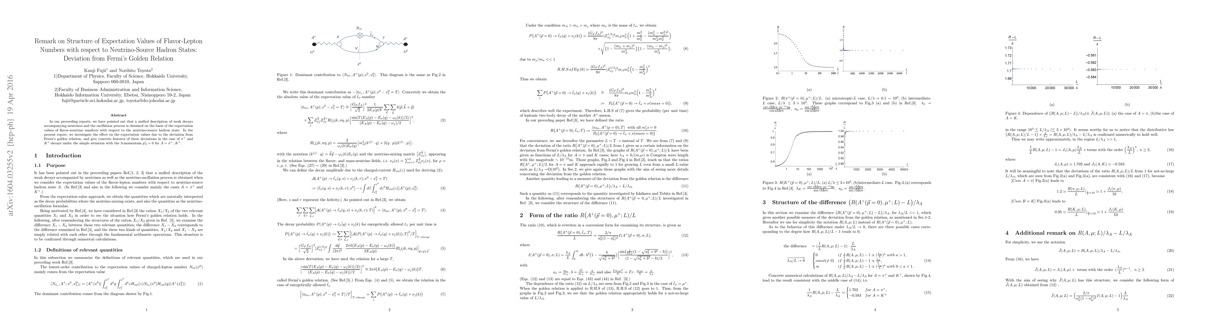 In our preceeding reports, we have pointed out that a unified description of weak decays accompanying neutrinos and the oscillation process is obtained on the basis of the expectation values of flavor-neutrino numbers with respect to the neutrino-source hadron state. In the present report, we investigate the effect on the expectation values due to the deviation from Fermi's golden relation, and give concrete features of these deviations in the case of $\pi^+$ and $K^+$-decays under the simple situation with the $3$-momentum $\vec{p_A}=0$ for $A=\pi^+$, $K^+$. %numerical results under simple situations.