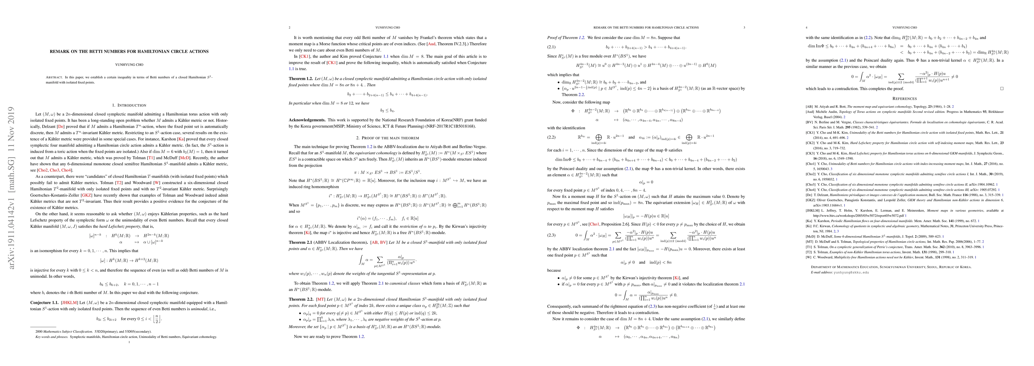 In this paper, we establish a certain inequality in terms of Betti numbers of a closed Hamiltonian $S^1$-manifold with isolated fixed points.