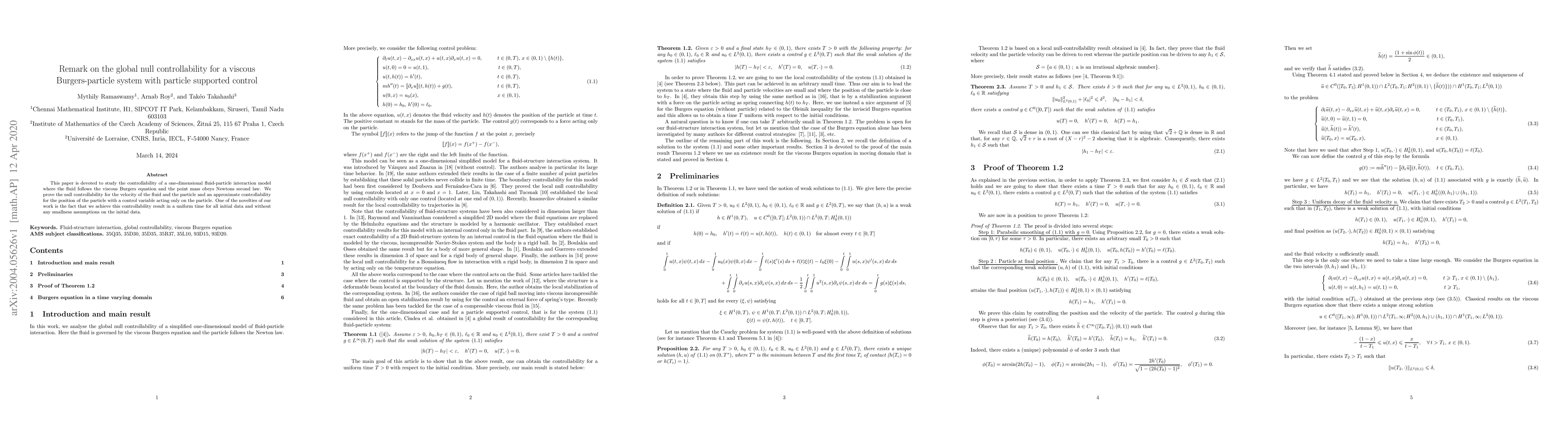 This paper proves global null controllability for a fluid-particle system where the fluid obeys the viscous Burgers equation and the particle follows Newton's second law, with control acting only on the particle. It achieves this controllability uniformly in time for all initial data without smallness assumptions.