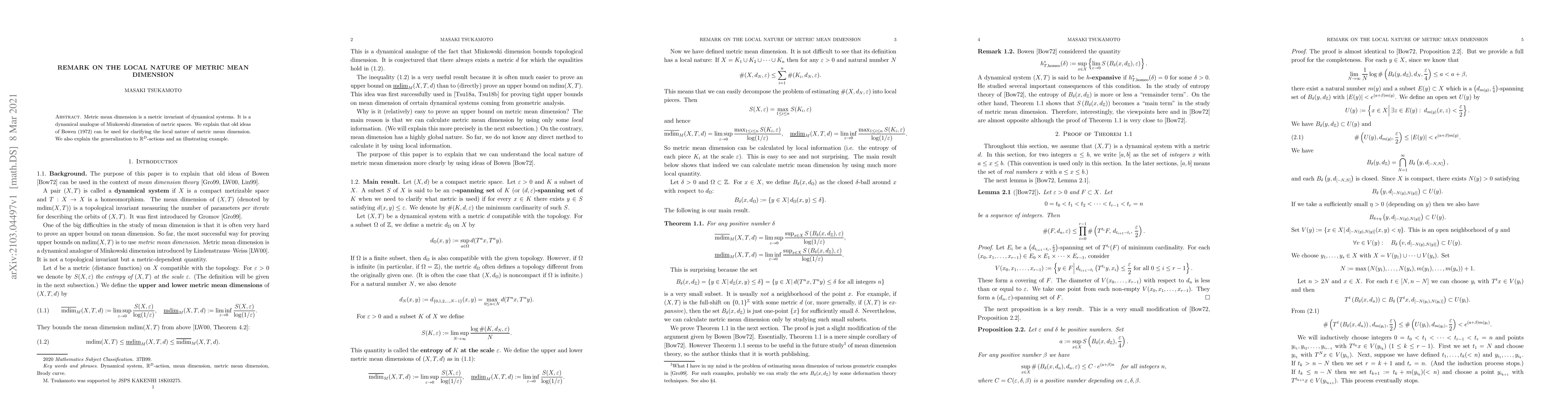 This paper discusses the local nature of metric mean dimension, a concept akin to Minkowski dimension but for dynamical systems. It explains how Bowen's 1972 ideas can clarify this, extending the concept to $mathbb{R}^D$-actions with an illustrative example.