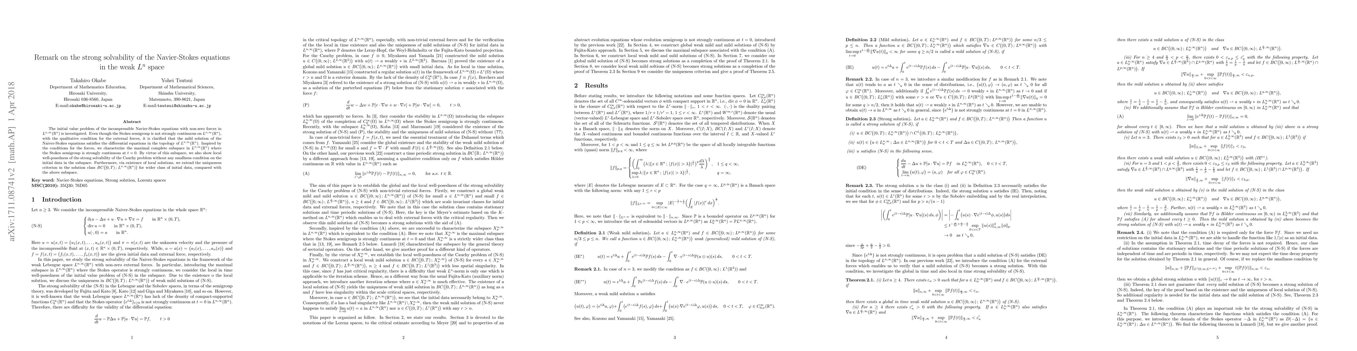 This paper investigates the strong solvability of the incompressible Navier-Stokes equations in $L^{n,\infty}(\mathbb{R}^n)$ space, demonstrating local well-posedness without smallness conditions on initial data. It also characterizes the maximal subspace where the Stokes semigroup is strongly continuous at $t=0$.