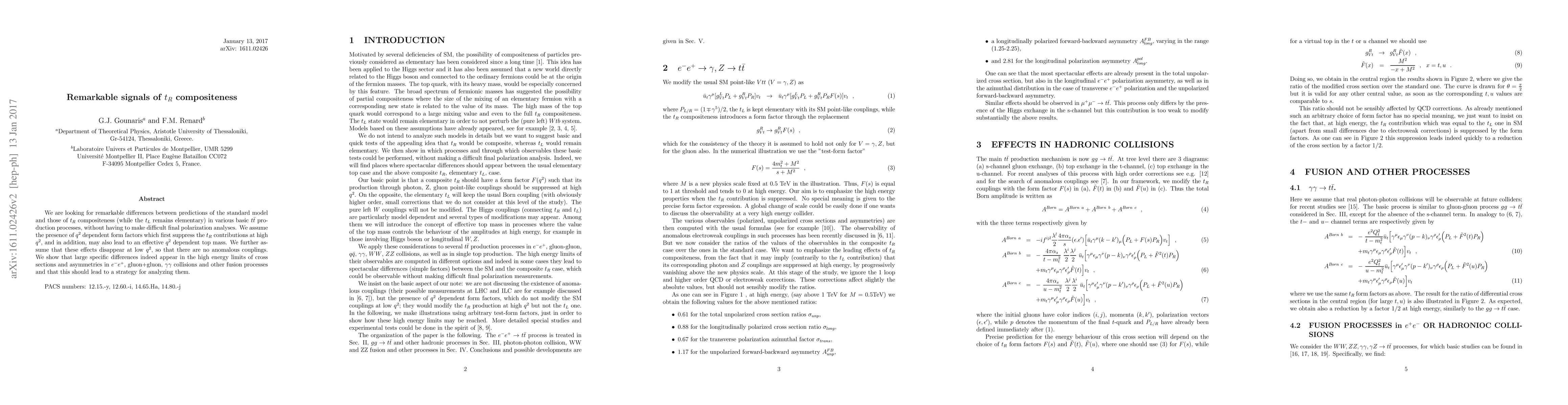 We are looking for remarkable differences between predictions of the standard model and those of $t_R$ compositeness (while the $t_L$ remains elementary) in various basic $t\bar t$ production processes, without having to make difficult final polarization analyses. We assume the presence of $q^2$ dependent form factors which first suppress the $t_R$ contributions at high $q^2$, and in addition, may also lead to an effective $q^2$ dependent top mass. We further assume that these effects disappear at low $q^2$ so that there are no anomalous couplings. We show that large specific differences indeed appear in the high energy limits of cross sections and asymmetries in $e^-e^+$, gluon+gluon, $\gamma\gamma$ collisions and other fusion processes and that this should lead to a strategy for analyzing them.