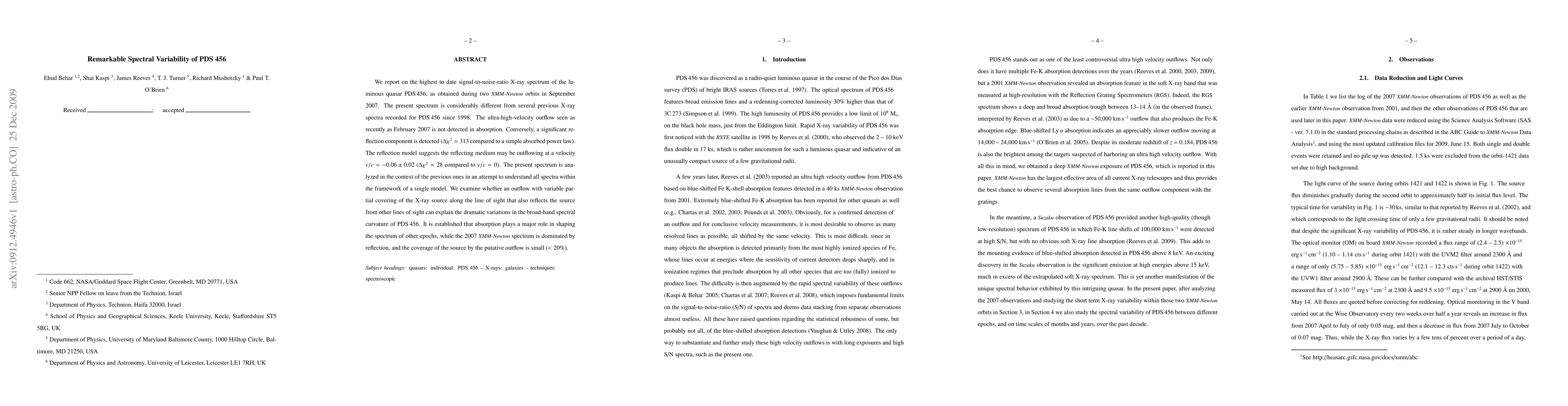 We report on the highest to date signal-to-noise-ratio X-ray spectrum of the luminous quasar PDS 456, as obtained during two XMM-Newton orbits in September 2007. The present spectrum is considerably different from several previous X-ray spectra recorded for PDS 456 since 1998. The ultra-high-velocity outflow seen as recently as February 2007 is not detected in absorption. Conversely, a significant reflection component is detected. The reflection model suggests the reflecting medium may be outflowing at a velocity v/c = -0.06 +/- 0.02. The present spectrum is analyzed in the context of the previous ones in an attempt to understand all spectra within the framework of a single model. We examine whether an outflow with variable partial covering of the X-ray source along the line of sight that also reflects the source from other lines of sight can explain the dramatic variations in the broad-band spectral curvature of PDS 456. It is established that absorption plays a major role in shaping the spectrum of other epochs, while the 2007 XMM-Newton spectrum is dominated by reflection, and the coverage of the source by the putative outflow is small (< 20%).