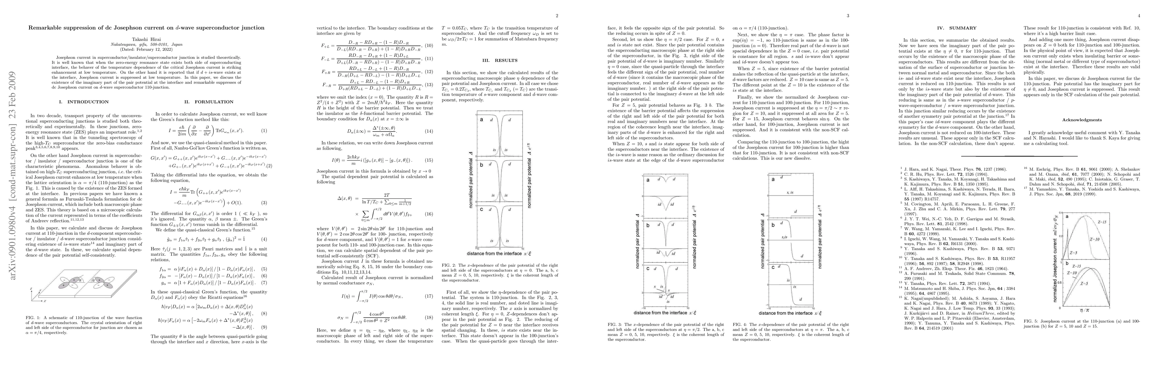 Josephson current in superconductor/insulator/superconductor junction is studied theoretically. It is well known that when the zero-energy resonance state exists both side of superconducting interface, the behaver of the temperature dependence of the critical Josephson current is striking enhancement at low temperature. On the other hand it is reported that if $d+is$-wave exists at the interface, Josephson current is suppressed at low temperature. In this paper, we discuss the existence of the imaginary part of the pair potential at the interface and remarkable suppresses of dc Josephson current on d-wave superconductor 110-junction.