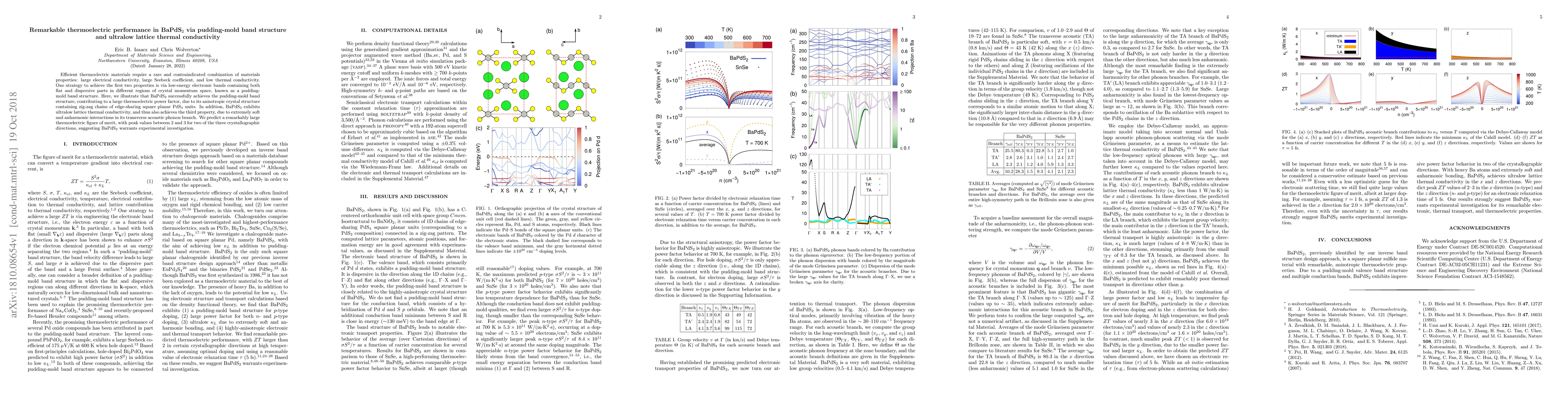 This paper demonstrates that BaPdS$_2$ achieves a rare combination of high electrical conductivity, large Seebeck coefficient, and low thermal conductivity through a pudding-mold band structure and ultralow lattice thermal conductivity, predicting a significant thermoelectric figure of merit.