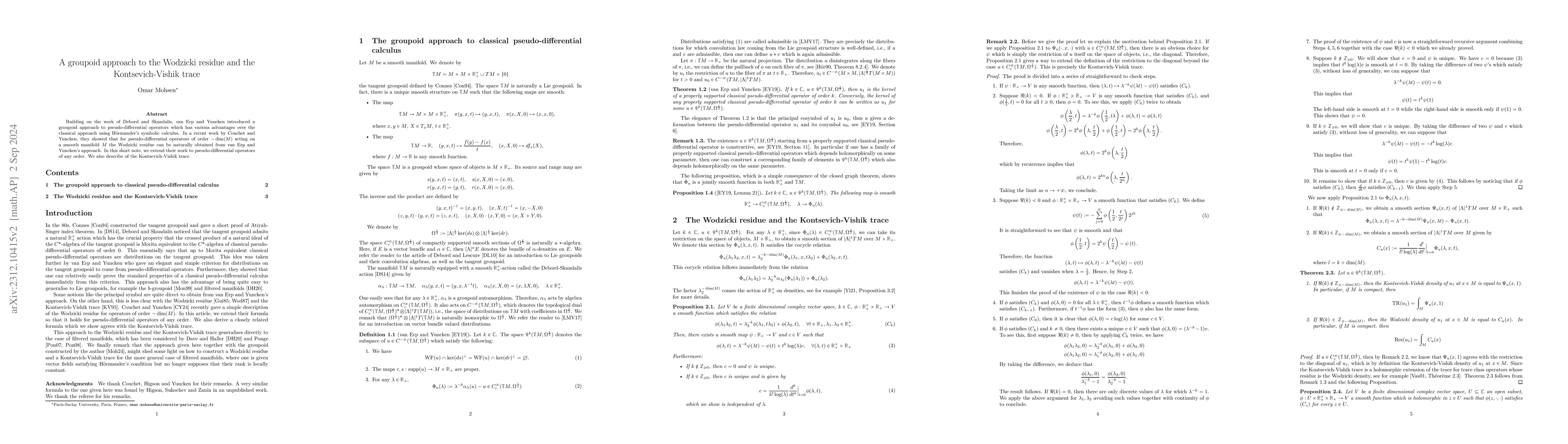 Building on the work of Debord and Skandalis, van Erp and Yuncken introduced a groupoid approach to pseudo-differential operators which has various advantages over the classical approach using H\"ormander's symbolic calculus. In a recent work by Couchet and Yuncken, they showed that for pseudo-differential operators of order $-\dim(M)$ acting on a smooth manifold $M$ the Wodzicki residue can be naturally obtained from van Erp and Yuncken's approach. In this short note, we extend their work to pseudo-differential operators of any order. We also give a description of the Kontsevich-Vishik trace.