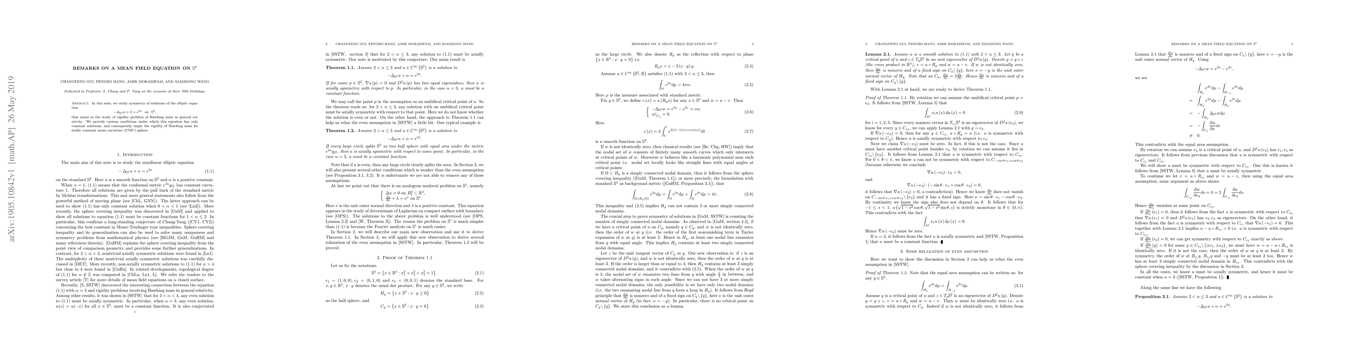 In this note, we study symmetry of solutions of the elliptic equation \begin{equation*} -\Delta _{\mathbb{S}^{2}}u+3=e^{2u}\ \ \hbox{on}\ \ \mathbb{S}^{2}, \end{equation*} that arises in the study of rigidity problem of Hawking mass in general relativity. We provide various conditions under which this equation has only constant solutions, and consequently imply the rigidity of Hawking mass for stable constant mean curvature (CMC) sphere.