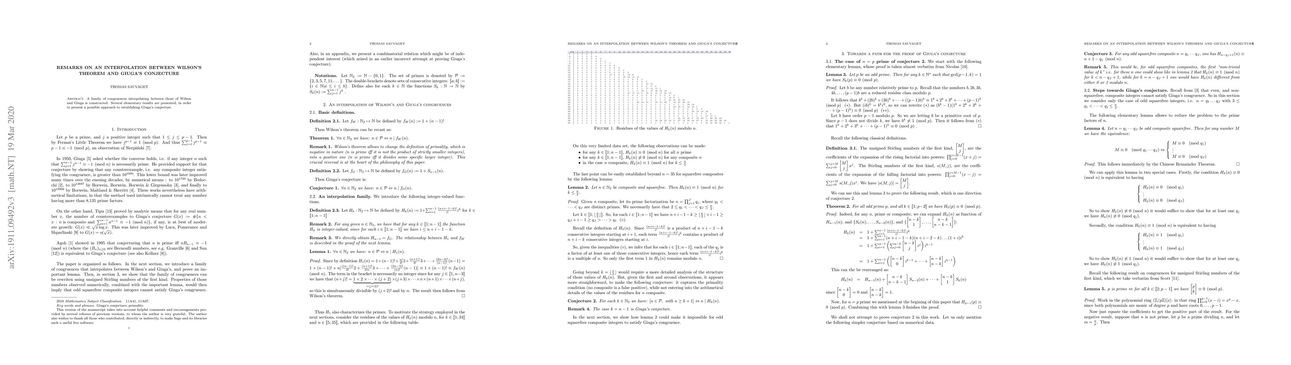 A family of congruences interpolating between those of Wilson and Giuga is constructed. Several elementary results are established, in order to present a possible approach to establishing Giuga's conjecture.