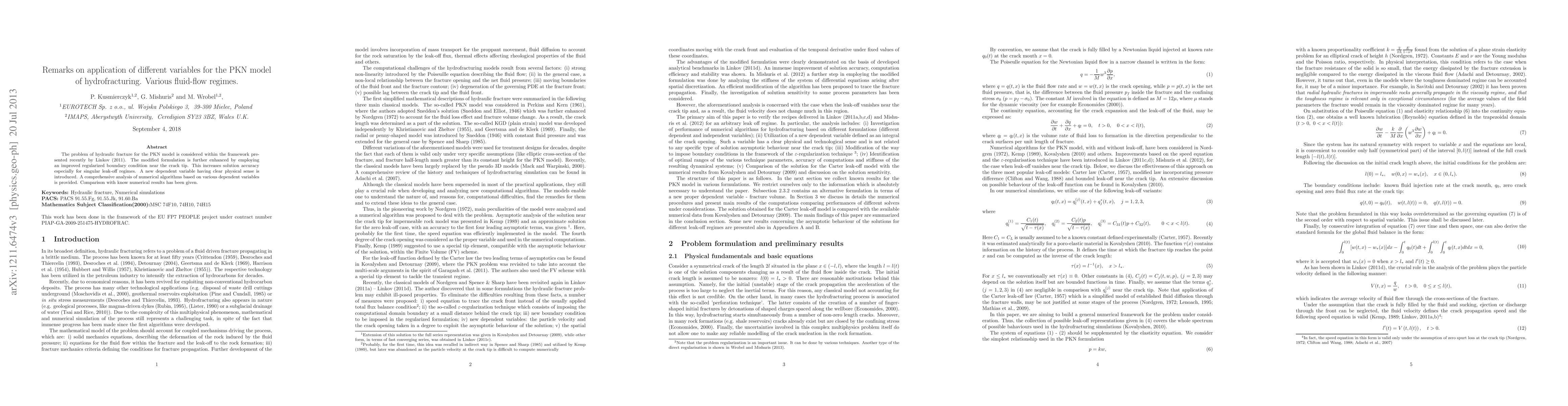 The problem of hydraulic fracture for the PKN model is considered within the framework presented recently by Linkov (2011). The modified formulation is further enhanced by employing an improved regularized boundary condition near the crack tip. This increases solution accuracy especially for singular leak-off regimes. A new dependent variable having clear physical sense is introduced. A comprehensive analysis of numerical algorithms based on various dependent variables is provided. Comparison with know numerical results has been given.
