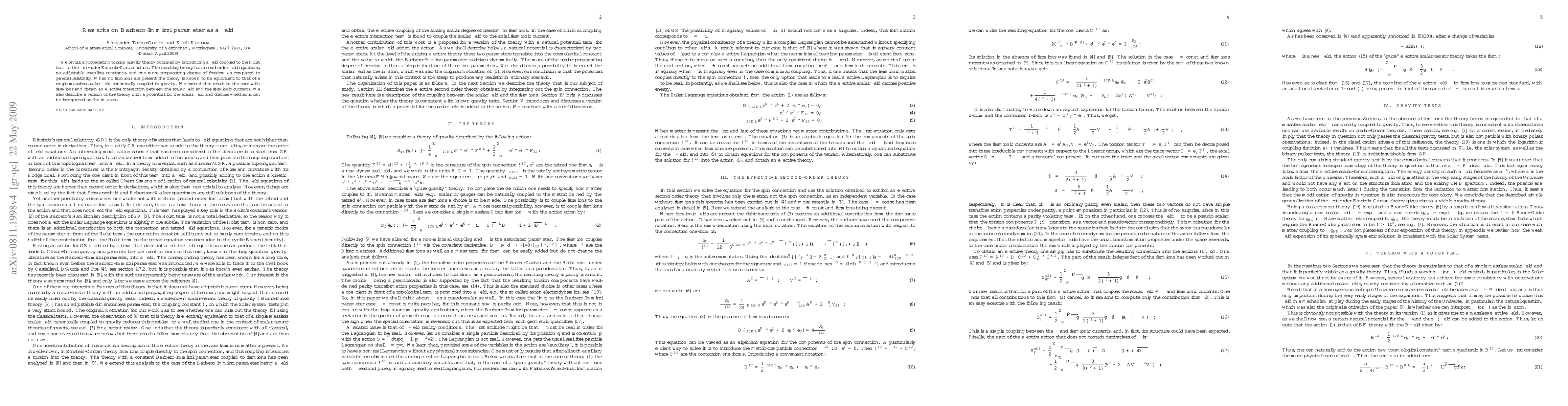We revisit a propagating torsion gravity theory obtained by introducing a field coupled to the Holst term in the first-order Einstein-Cartan action. The resulting theory has second order field equations, no adjustable coupling constants, and one more propagating degree of freedom as compared to general relativity. When no fermions are present the theory is known to be equivalent to that of a single massless scalar field canonically coupled to gravity. We extend this result to the case with fermions and obtain an effective interaction between the scalar field and the fermionic currents. We also describe a version of the theory with a potential for the scalar field and discuss whether it can be interpreted as the inflaton.