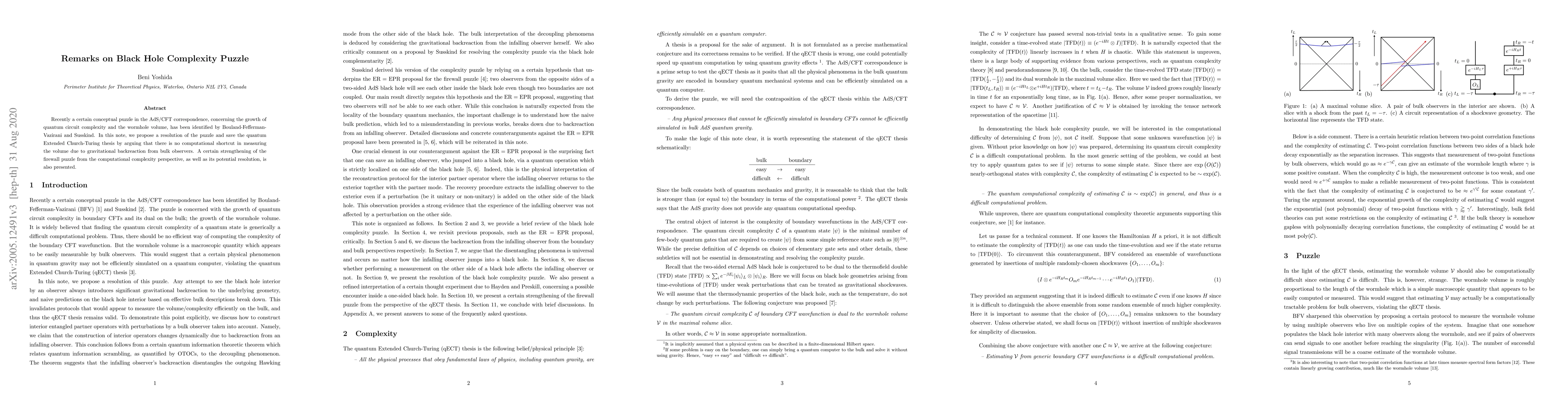 Recently a certain conceptual puzzle in the AdS/CFT correspondence, concerning the growth of quantum circuit complexity and the wormhole volume, has been identified by Bouland-Fefferman-Vazirani and Susskind. In this note, we propose a resolution of the puzzle and save the quantum Extended Church-Turing thesis by arguing that there is no computational shortcut in measuring the volume due to gravitational backreaction from bulk observers. A certain strengthening of the firewall puzzle from the computational complexity perspective, as well as its potential resolution, is also presented.