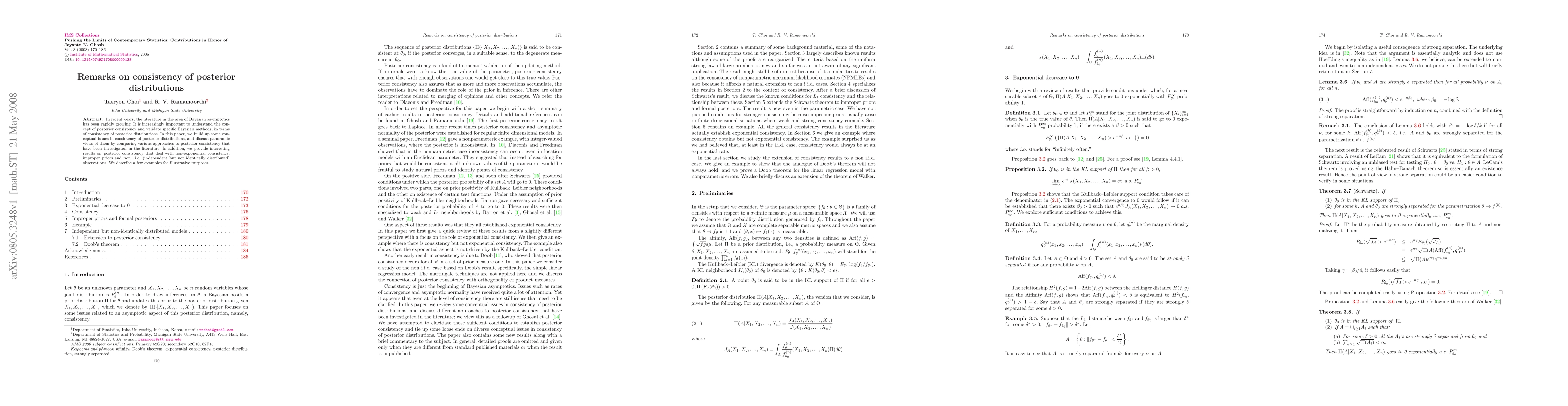 This paper explores the concept of posterior consistency in Bayesian asymptotics, comparing various methods and addressing issues like non-exponential consistency, improper priors, and non-i.i.d. observations, providing illustrative examples to enhance understanding.