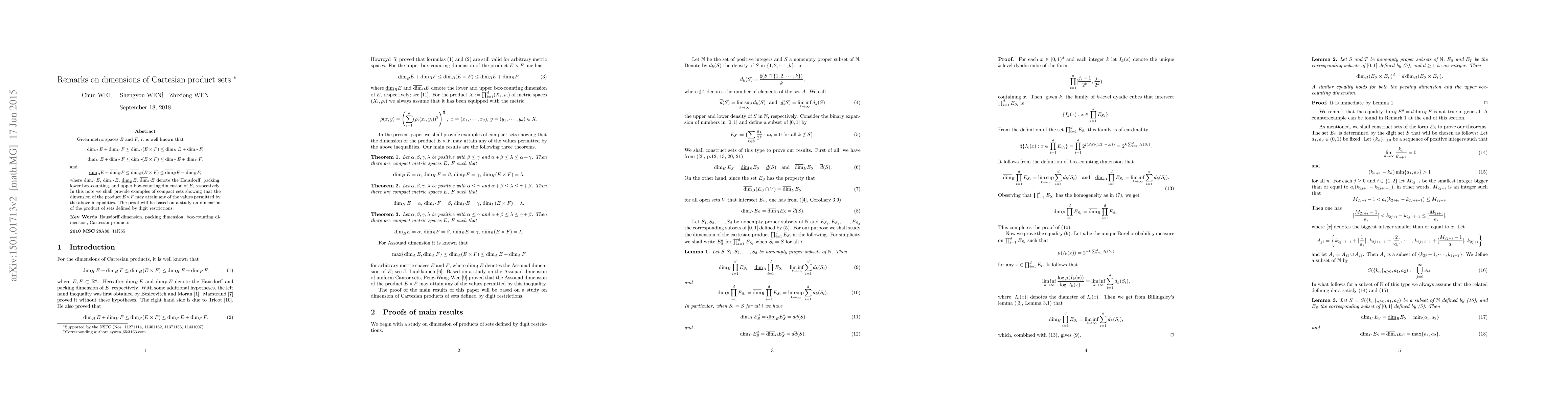 The paper explores the dimensions of Cartesian product sets in metric spaces E and F, providing examples that show the dimension of the product can attain any value within permitted inequalities, highlighting the complexity of dimension theory.