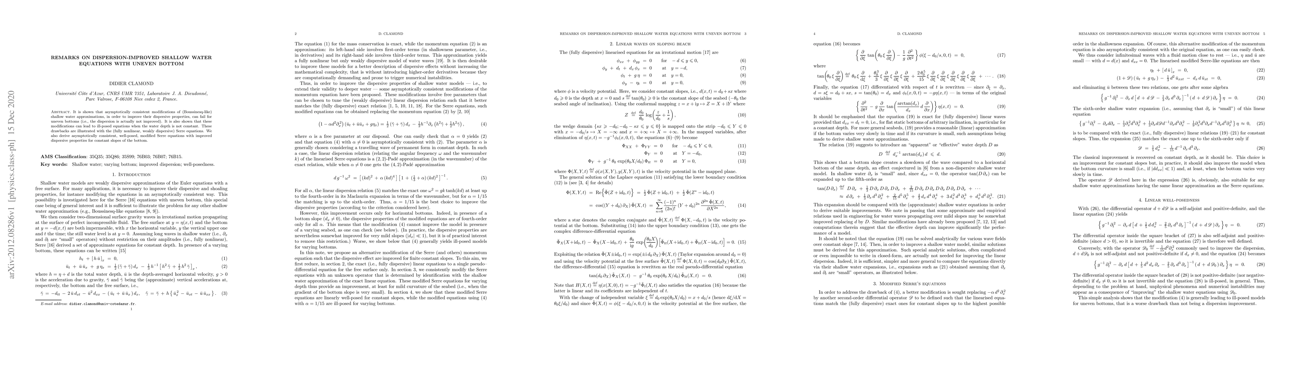 This paper discusses modifications to Boussinesq-like shallow water equations to enhance dispersive properties, finding they fail for uneven bottoms and can lead to ill-posed equations. It proposes improved, well-posed Serre equations for constant bottom slopes.