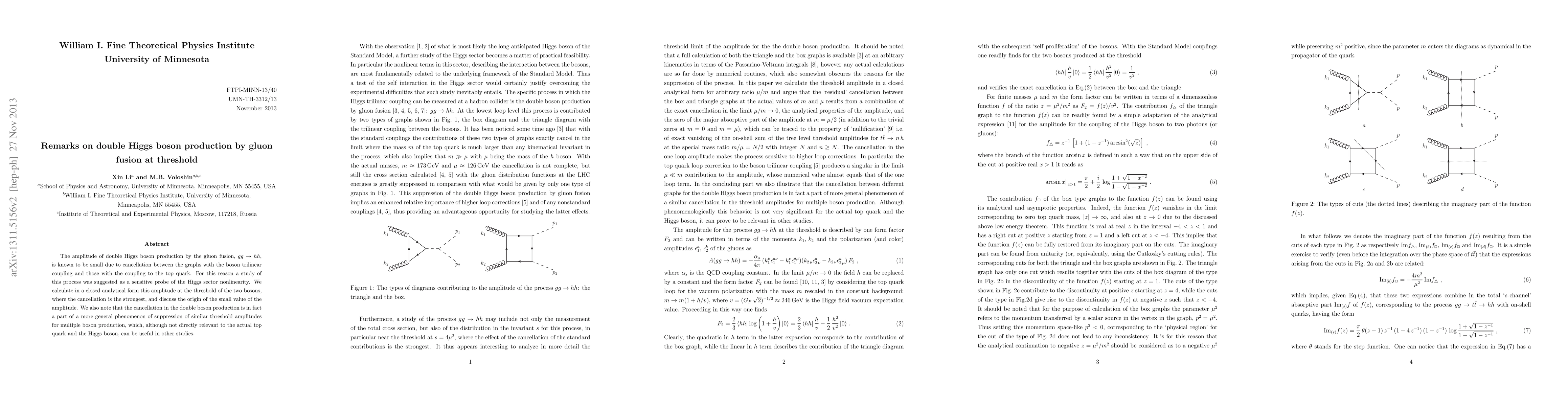 This paper calculates the amplitude for double Higgs boson production via gluon fusion at threshold, revealing a small value due to cancellations between different coupling mechanisms. The study highlights the broader suppression of similar threshold amplitudes in multiple boson production, offering insights beyond the Higgs sector.