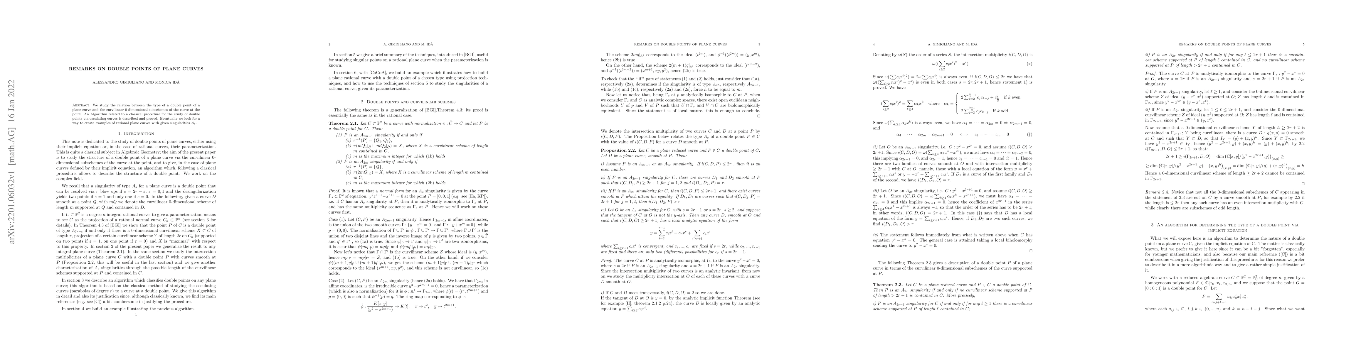 This paper explores the relationship between double points of plane curves and their curvilinear subschemes, developing an algorithm to study these points via osculating curves. It also aims to create examples of rational plane curves with specific singularities.